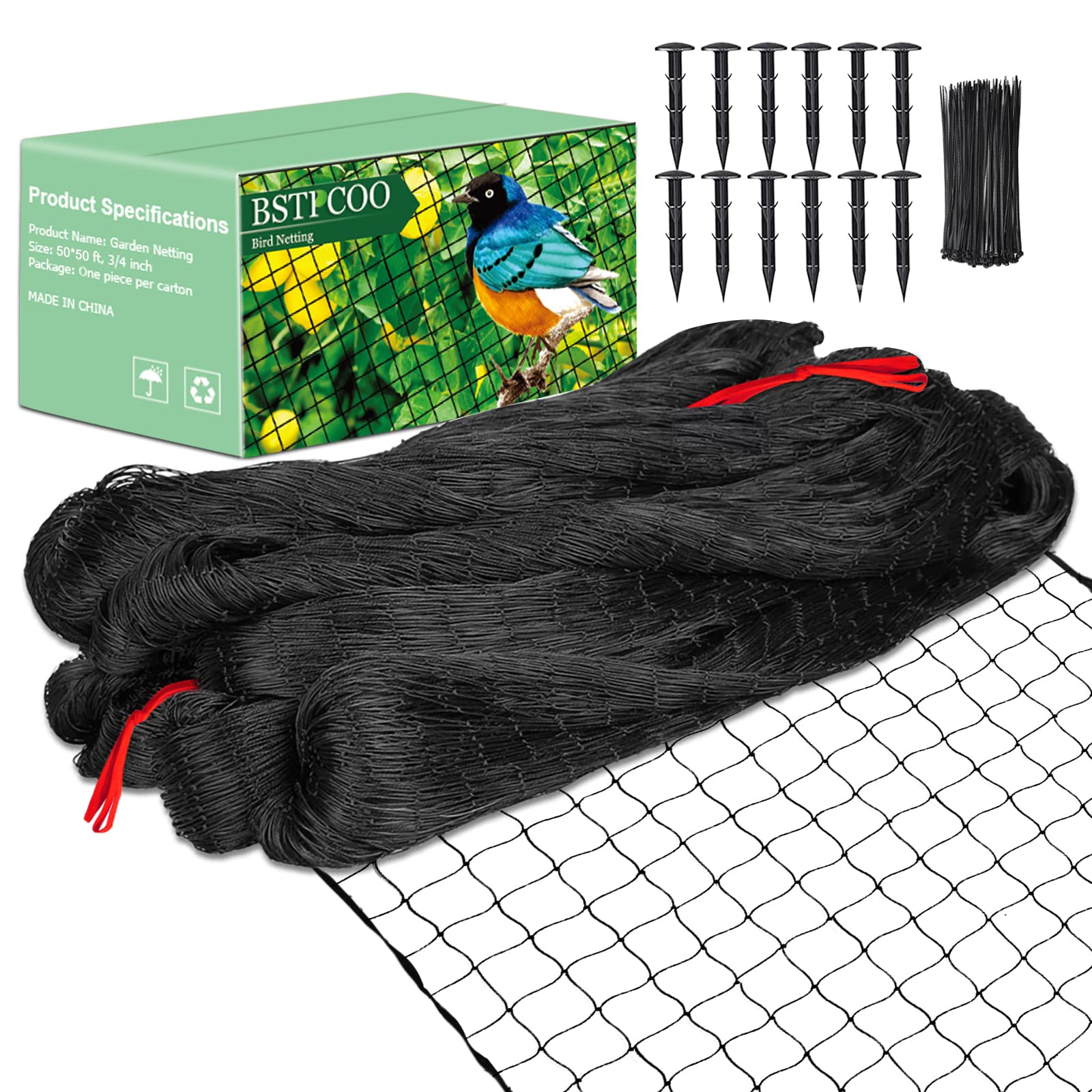 BSTPCOO Bird Net 50'x50' for Chicken Coop, Heavy Duty Nylon 3/4" Mesh Garden Netting, Aviary, Deer Fence, Pests Trellis for Fruits Trees Plant