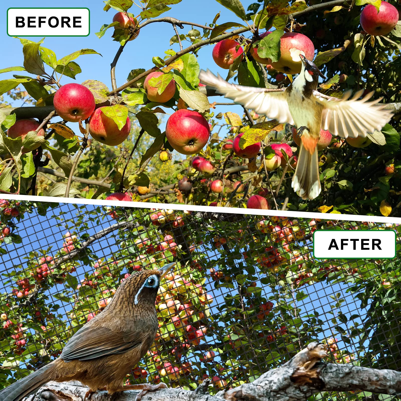 - 【Heavy Duty Bird Netting】 Our lightweight but heavy duty bird net is is made of nylon multifilament net which is UV-proof, this mesh netting won't tangle and tear easily, highly durable and reusable.