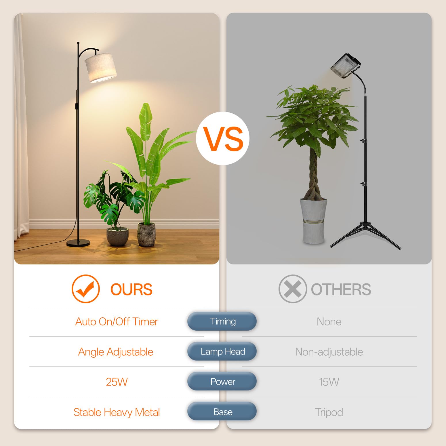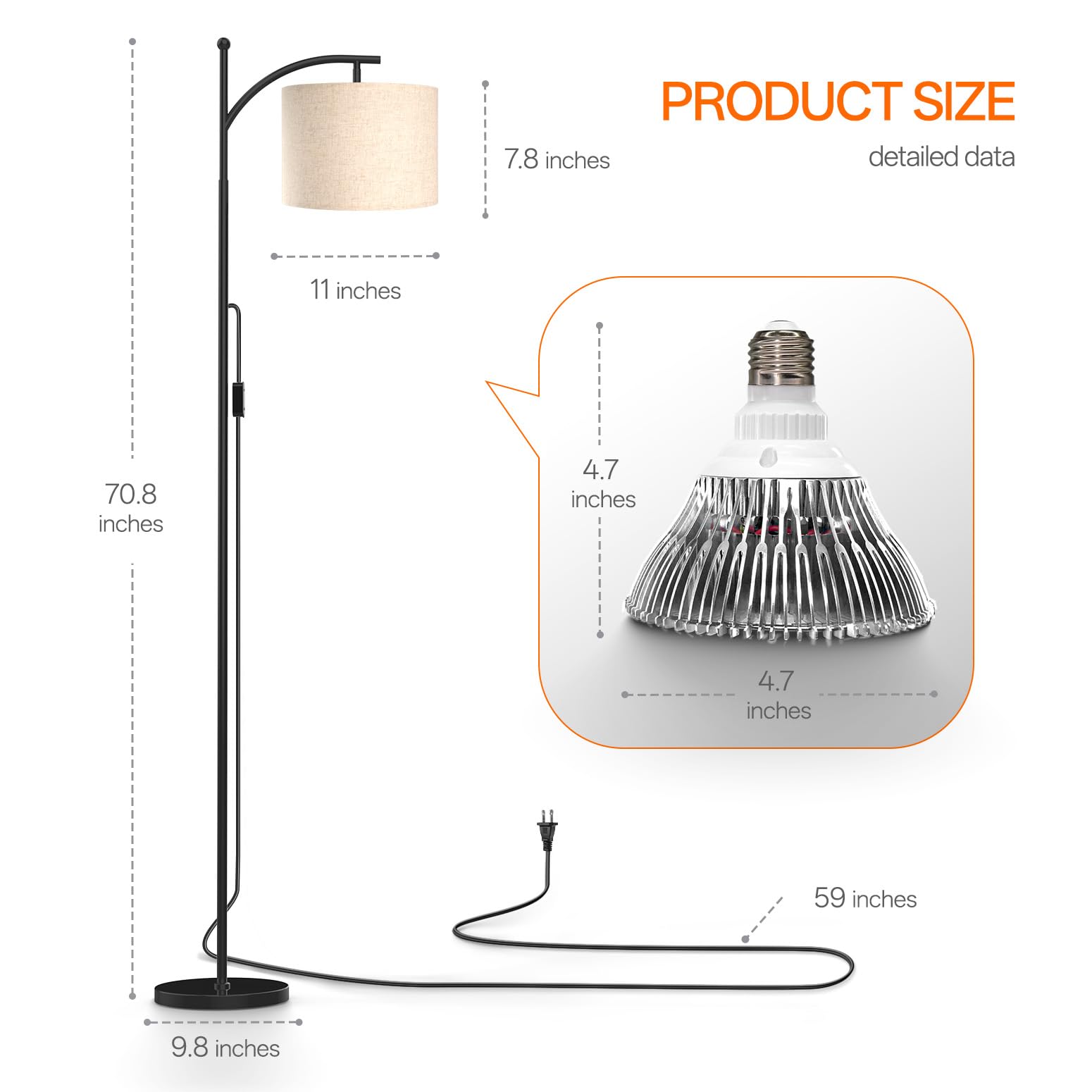 - Optimized Light Angle for Every Plant - With a 70.8" tall stand and 120° adjustable bulb head, this plant light delivers precise illumination for plants of all sizes. Easily direct light where it's needed most while the stable height ensures consistent coverage from top to bottom
