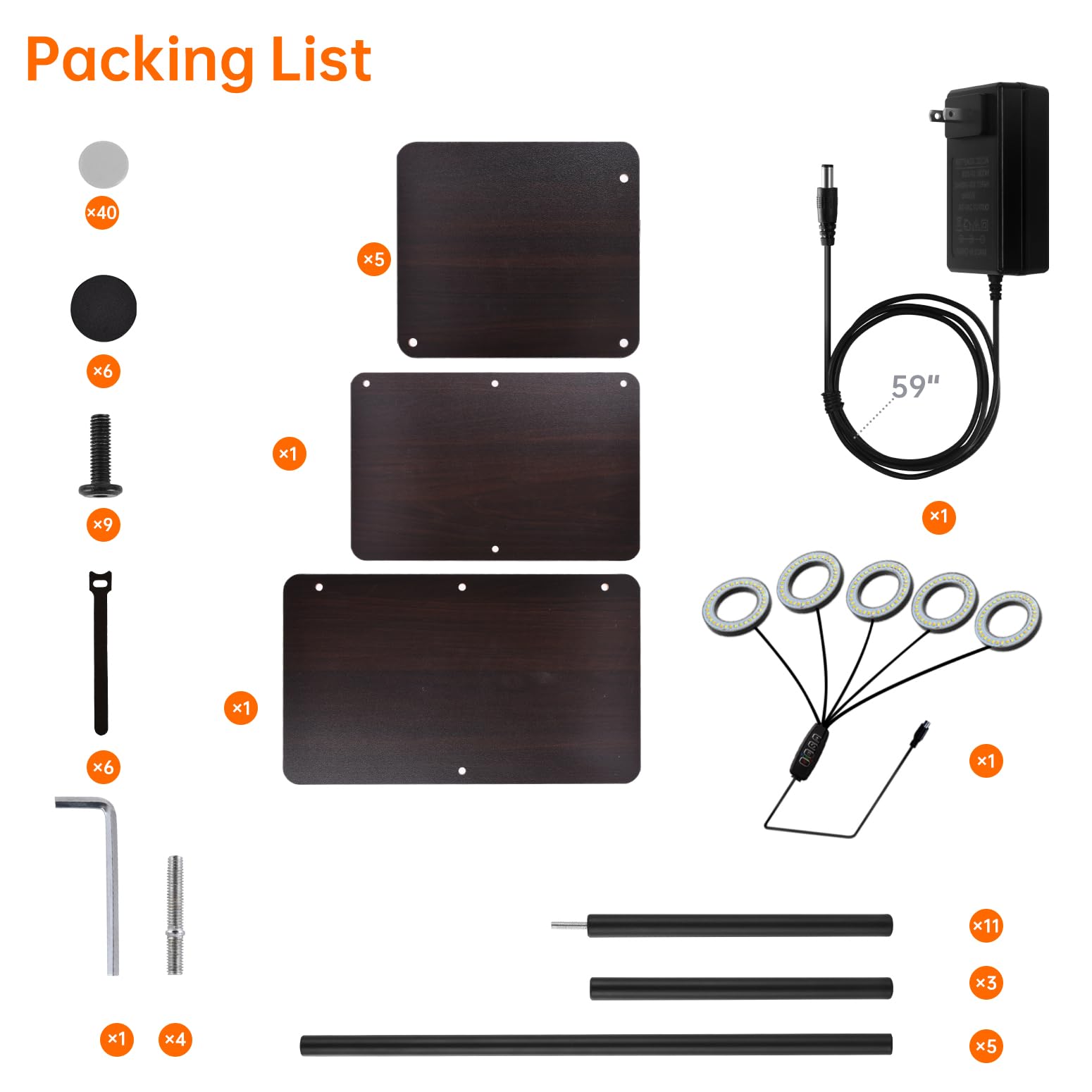 - Hassle-Free Assembly with Guided Setup - This plant stand with grow light features easy assembly—all components (wooden boards, screws, metal rods) are clearly labeled, and the package includes all necessary tools + step-by-step instructions. For added convenience, it comes with 4 non-slip foot pads for stability and cable ties to organize cords neatly