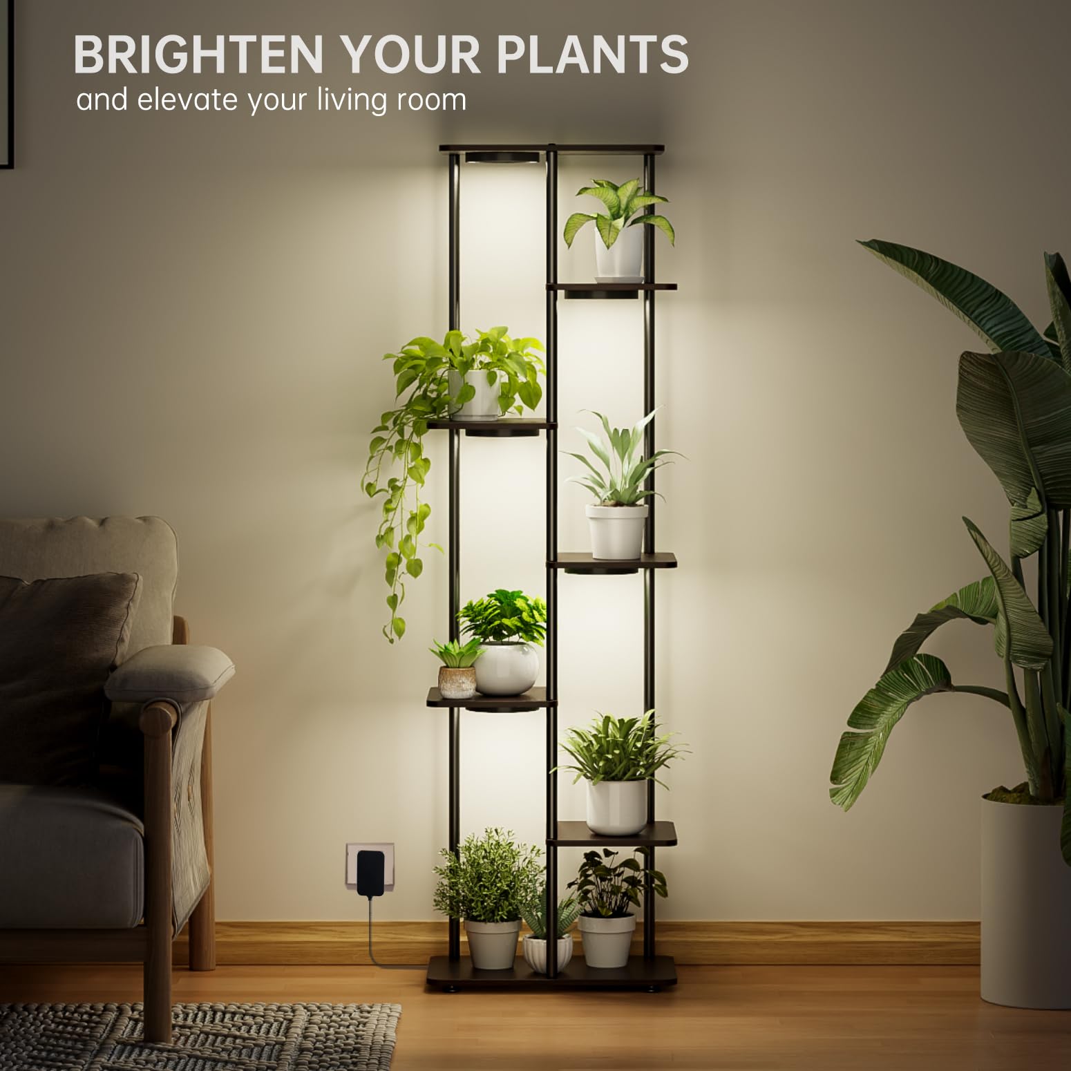- Spacious & Stylish 7-Tier Plant Stand - This tall plant stand indoor with grow lights (9.25" x 15.7" x 53") offers ample space to showcase your beloved plants across 7 tiers. Its classic design blends timeless aesthetics with functional decorative appeal—perfect for turning your indoor garden into a living art display