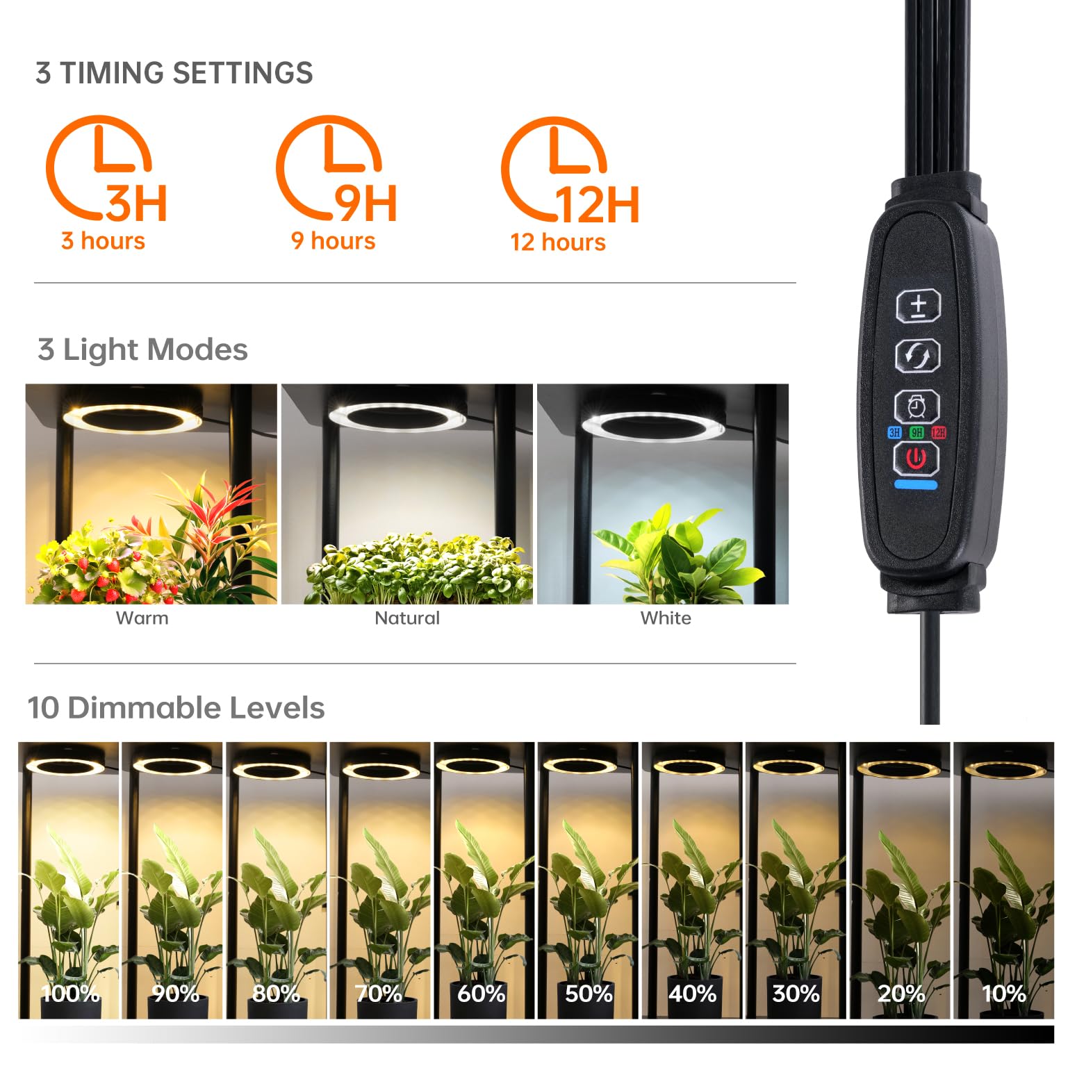 - Smart Auto-Timed Plant Care - Enhance your living space effortlessly with the built-in timed cycling function (3/9/12 hours). This timer ensures optimal daily light exposure for your plants without manual adjustments, making it ideal for busy lifestyles or travel periods