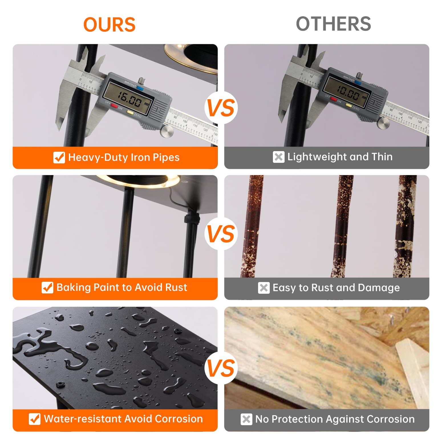 - Ultra-Sturdy Corner Shelf - Engineered for stability, this plant shelf features 0.62" heavy-duty iron pipes and 0.47" thick MDF boards, providing sturdy construction that safely holds multiple plant pots. The waterproof coating of boards protects against moisture, while the reinforced frame ensures long-lasting durability in humid plant environments