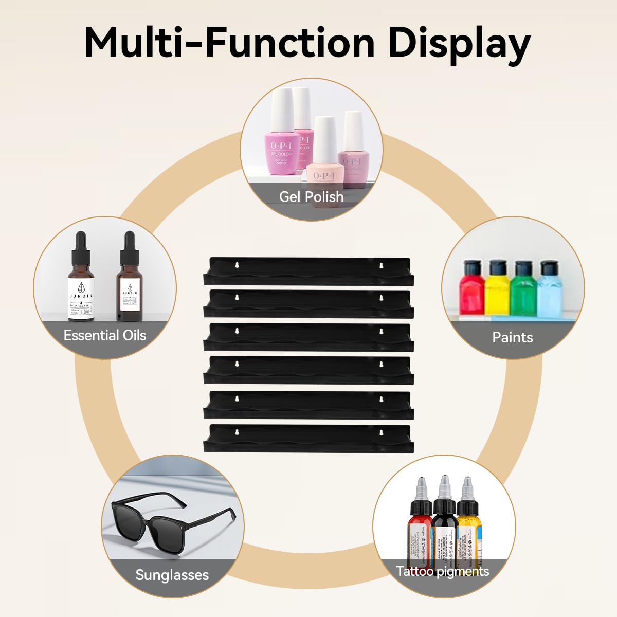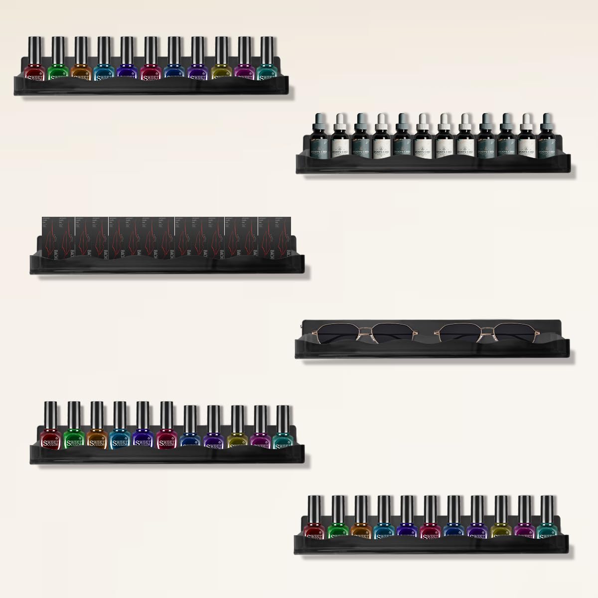 - Multi-Purpose Acrylic Floating Shelves: Acrylic Floating Shelves not only for nail polish/paints, but also great for mini perfume bottles, essential oils, tattoo inks, and is good to display sunglasses, place for a series of small things.