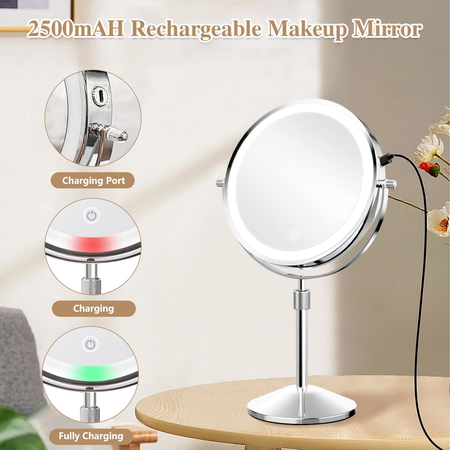 BTremary 20X Make Up Mirror with Lighting Adjustable Height, 8” Magnifying Mirror with Lights, 2500mAh Illuminated Makeup Mirror 360 Rotation Light Up Mirror for Detail Makeup in Bathroom/Bedroom.
