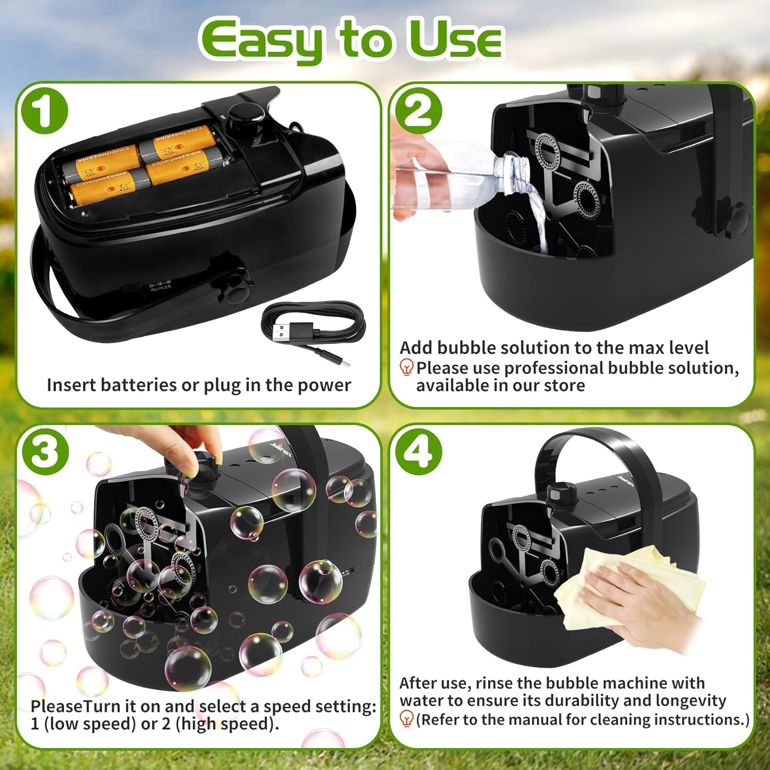 Bubble Machine Durable Automatic Bubble Blower, 18000+ Bubbles Per Minute Bubbles for Kids Toddlers Bubble Maker Operated by Plugin or Batteries Bubble Toys for Indoor Outdoor Birthday Party (Black)
