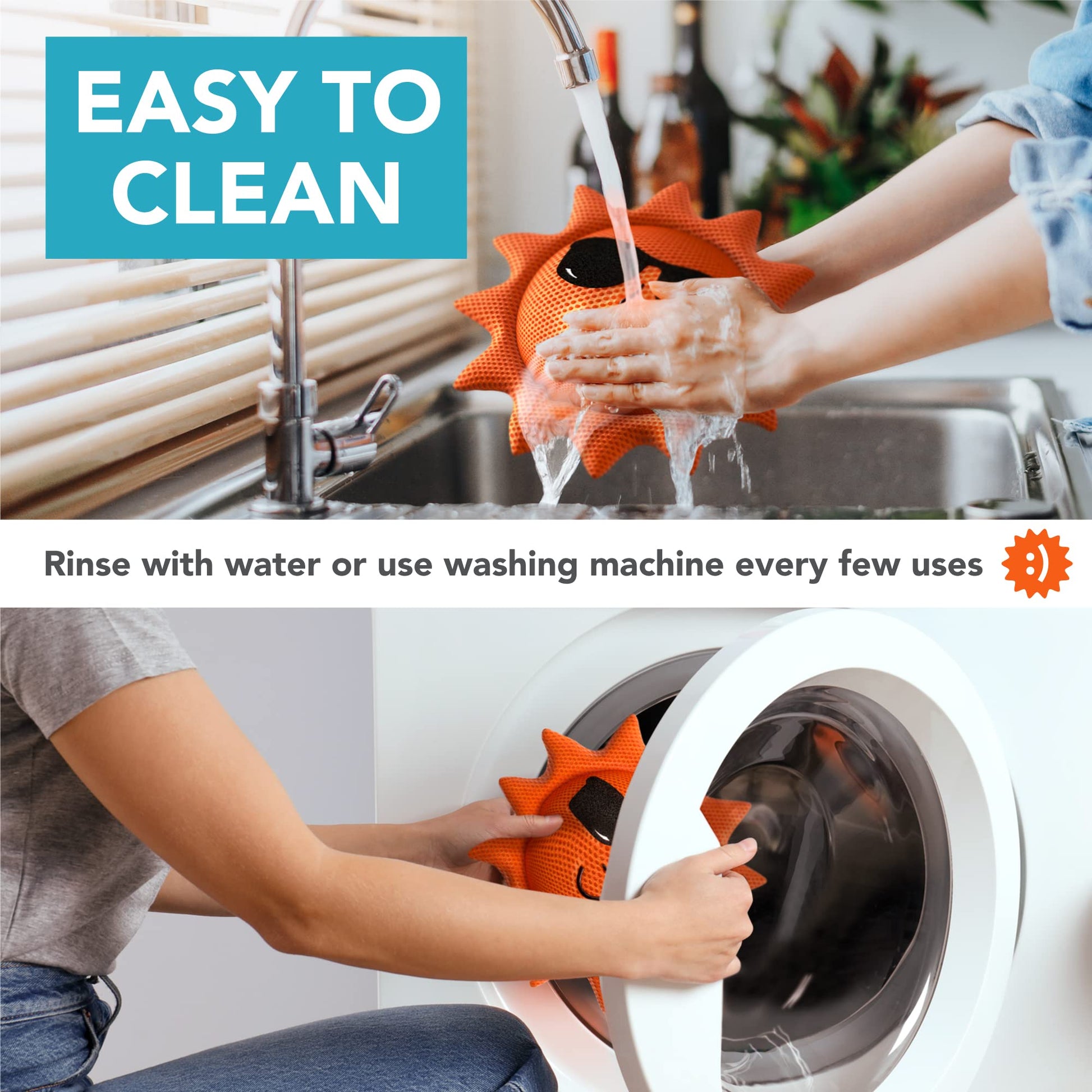 - EASY TO CLEAN - The spa cleaner for hot tub accessory is very easy to clean ! Just rinse the pool scum remover with cold water every week or wash on the delicate cold cycle in washing machine. The durable 3D Mesh pool oil absorber for pool scum absorber material is a Washable & Reusable hot tub oil absorbing sponge built to last! You can place it back in your hot tub wet or let sit on your hot tub steps to dry off.** Please Do Not Put The Spa Oil Absorbing Sponge In The Dryer, Please Air Dry **