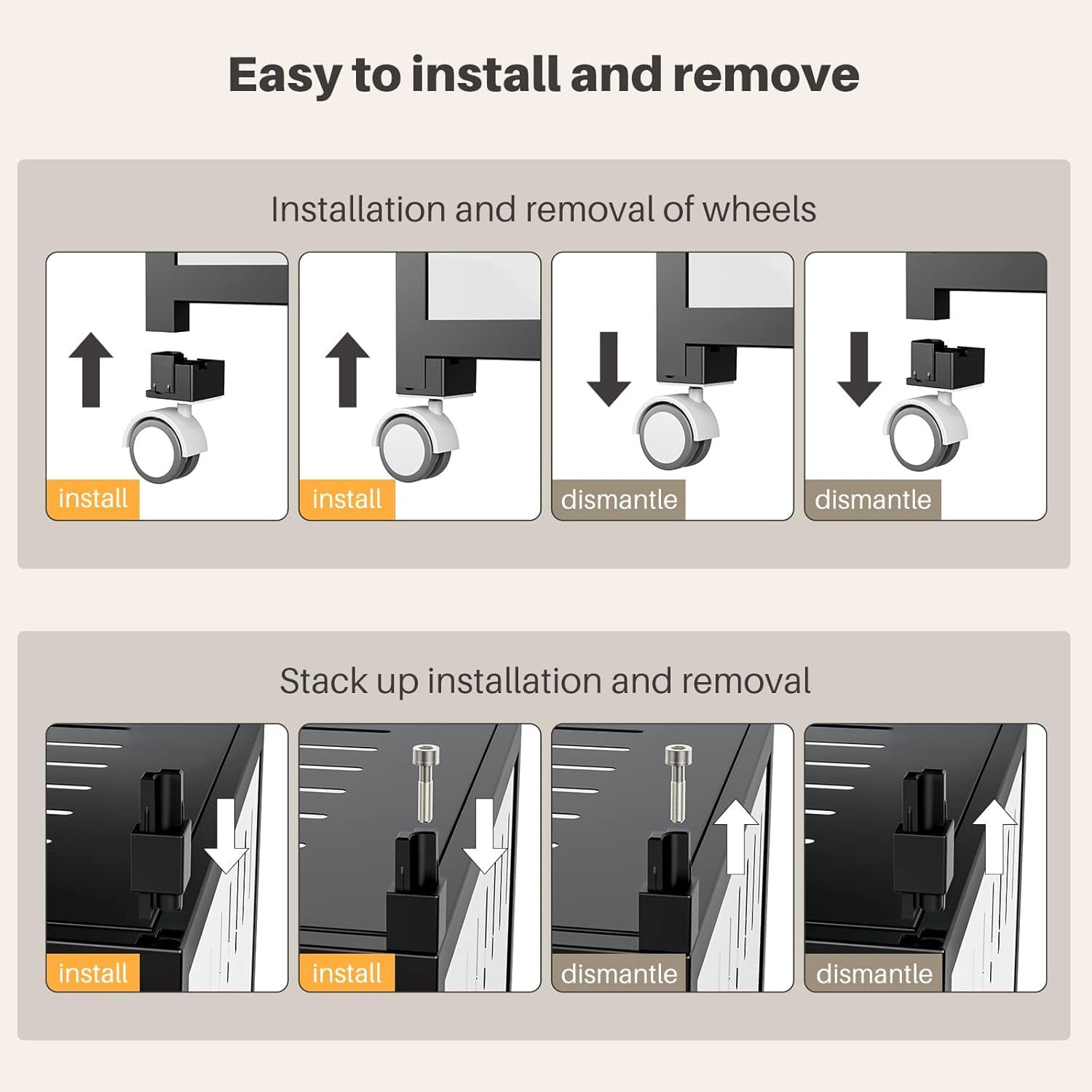 - Easy installation: Align the groove between the universal wheel and the metal cage, then use the tools we provide to tighten it. Install the cage fitting to the top of one metal cage first, and then install the second metal cage alignment hole to realize the cage stacking.