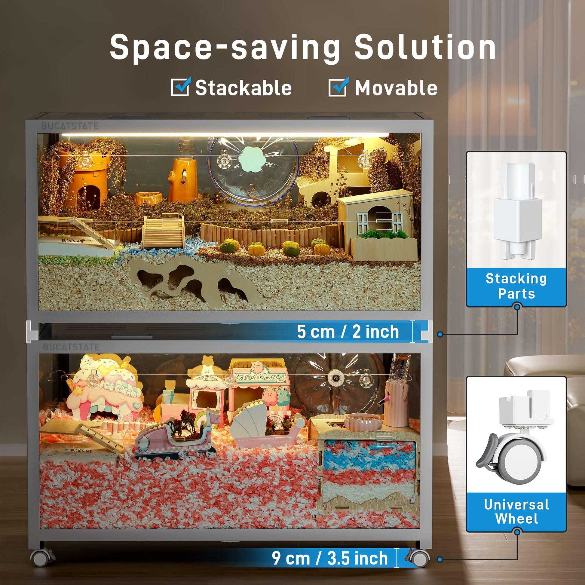 - Practical Stacking Cage Accessories: When you have two or more Bucatstate metal cages, you can stack them, which undoubtedly saves a lot of space, facilitates the management of your small animal habitat, and is also beautiful.
