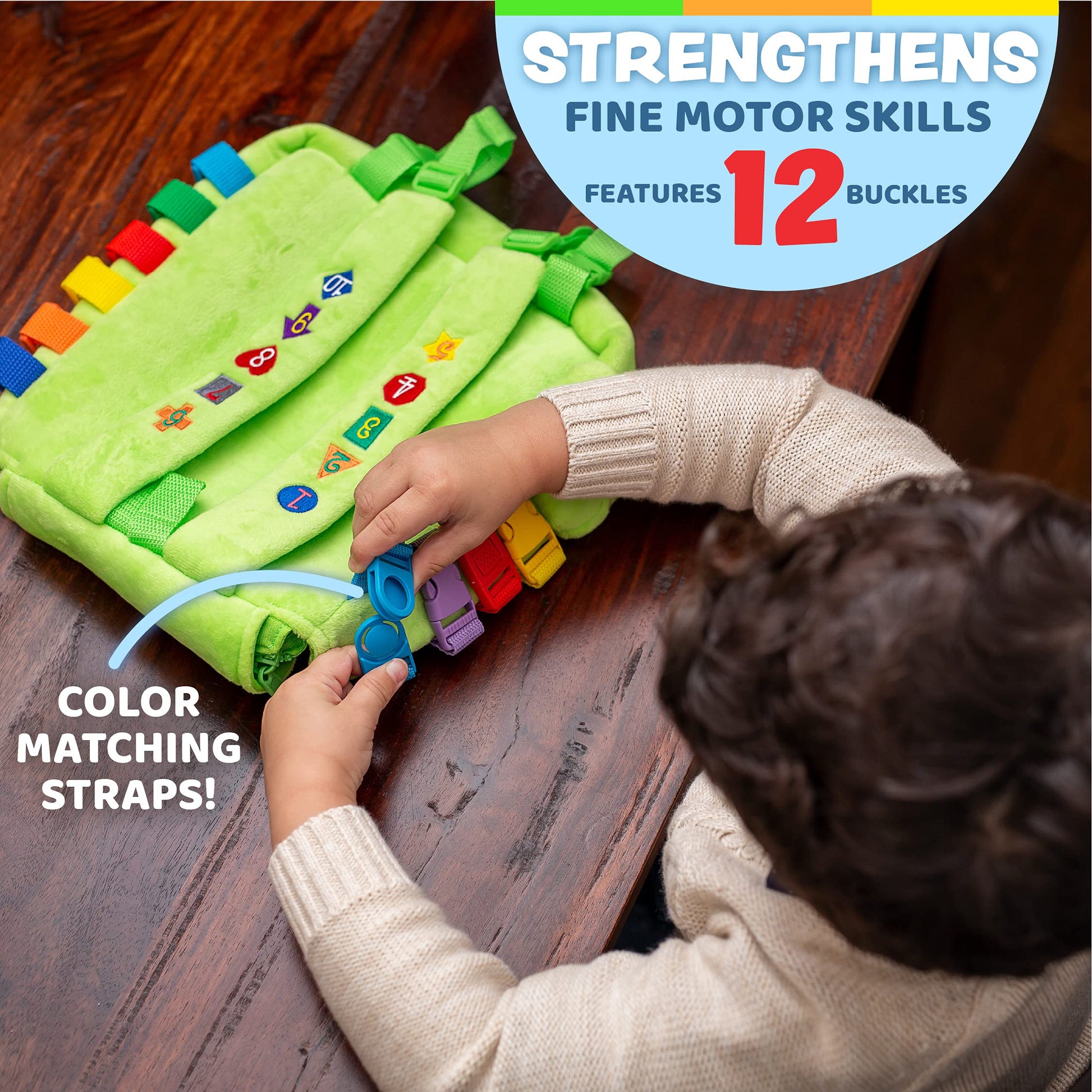 Buckle Toy - Buddy Activity Backpack - Educational Pre-K Learning Activity Toy - Zippered Pouch for Storage - Great Gift for Toddlers and Kids