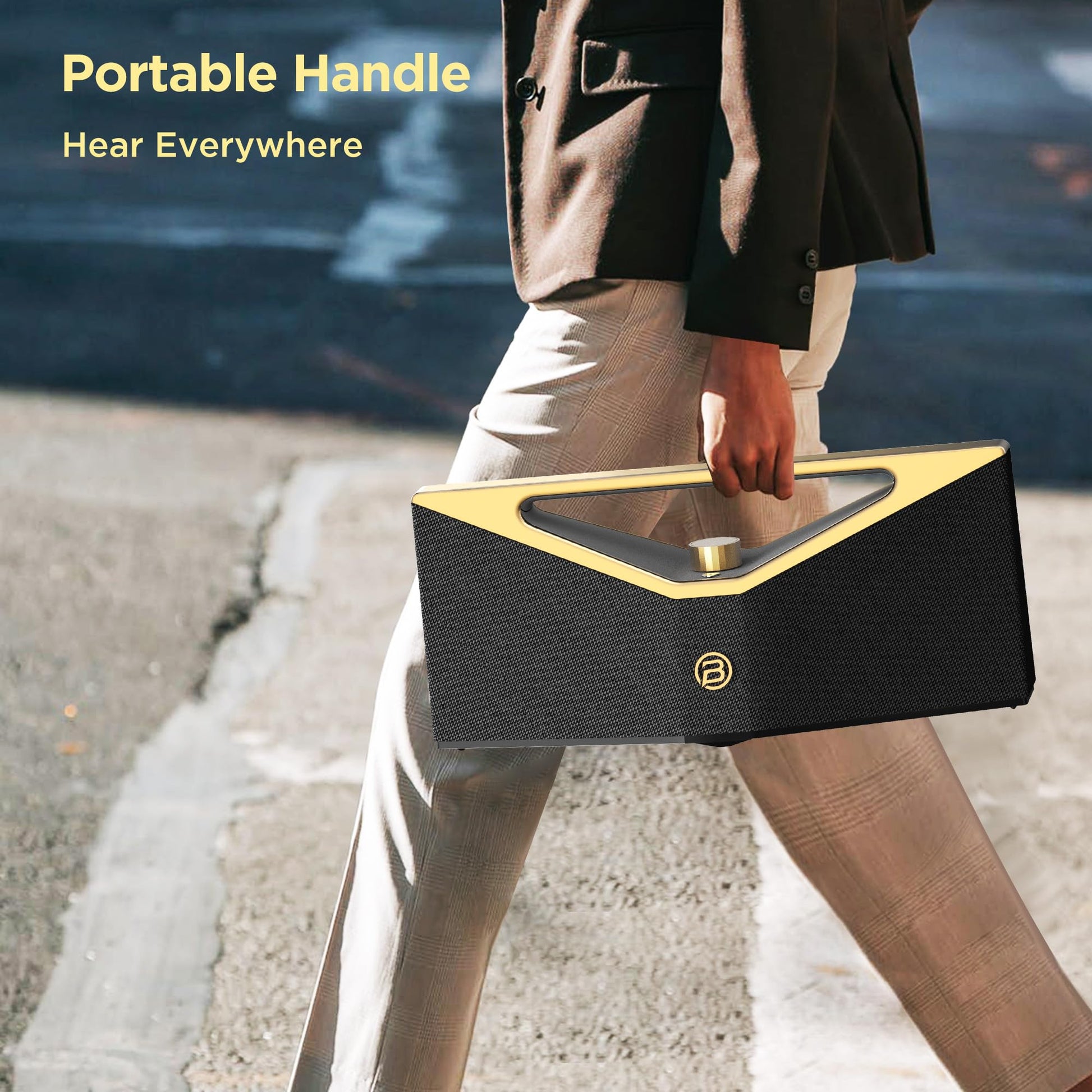 BUGANI Bluetooth Speaker Loud 160W,Waterproof Large Bluetooth Speaker Subwoofer Hi-Res Audio, 1-6H Playtime Party Outdoor Speakers for Camping, Beach, Golden