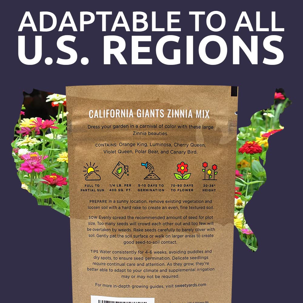 Bulk Zinnia Seeds - California Giants Mix - Bulk 1/4 Pound Bag Over 12,000 Flower Seeds - Mixed Colors and Large Blooms