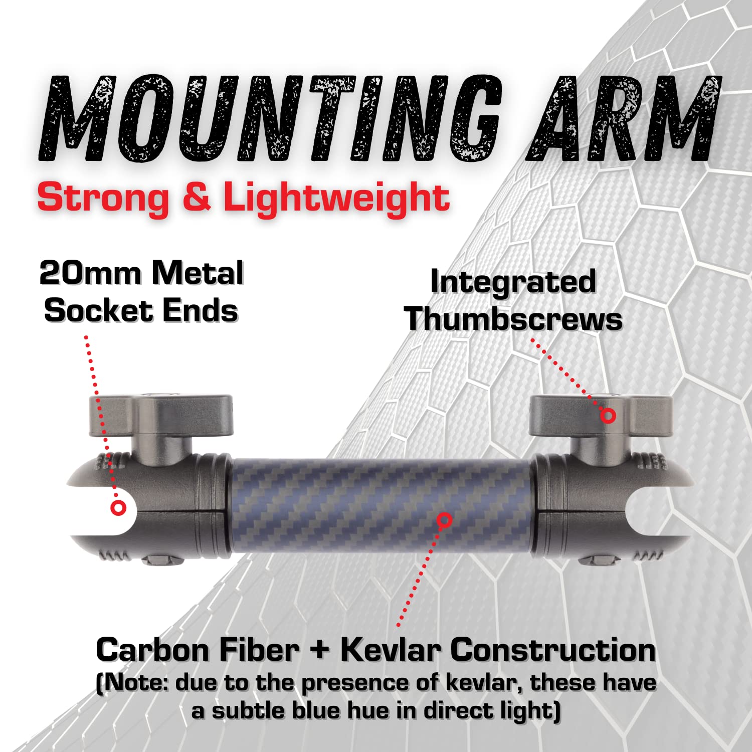 1x RubiGrid Dash Mount 1x AMPS Style 20mm Mounting Ball with Hardware 1x 7cm Carbon Fiber + Kevlar Hybrid Mounting Arm 1x Spring-Loaded Universal Phone Holder (expands open up to 3.4" wide)
