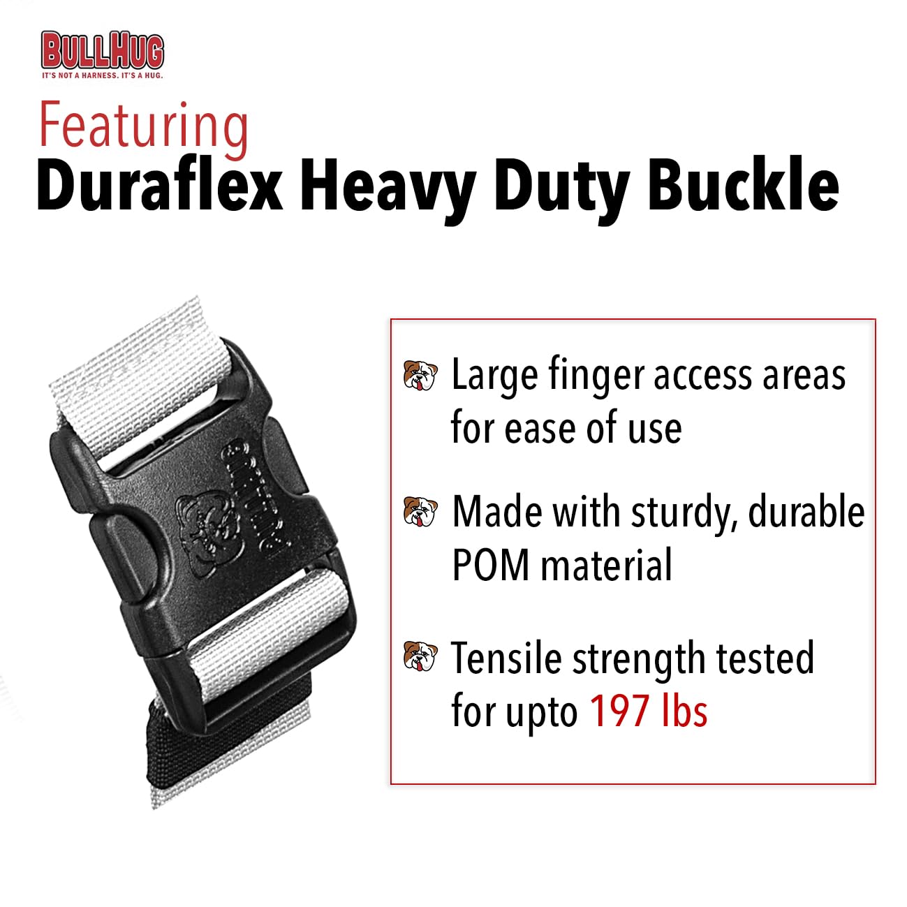 - Fully Adjustable: There are two spots where you can adjust your BULLHUG Harness. Velcro adjustments around the chest make it very easy to size the Harness precisely to your dog’s body for ultimate comfort. An additional plastic adjustment on the bottom of the harness lets you dial it in even further. The result is a secure, strong, comfortable, adjustable dog harness that offers room for growth.