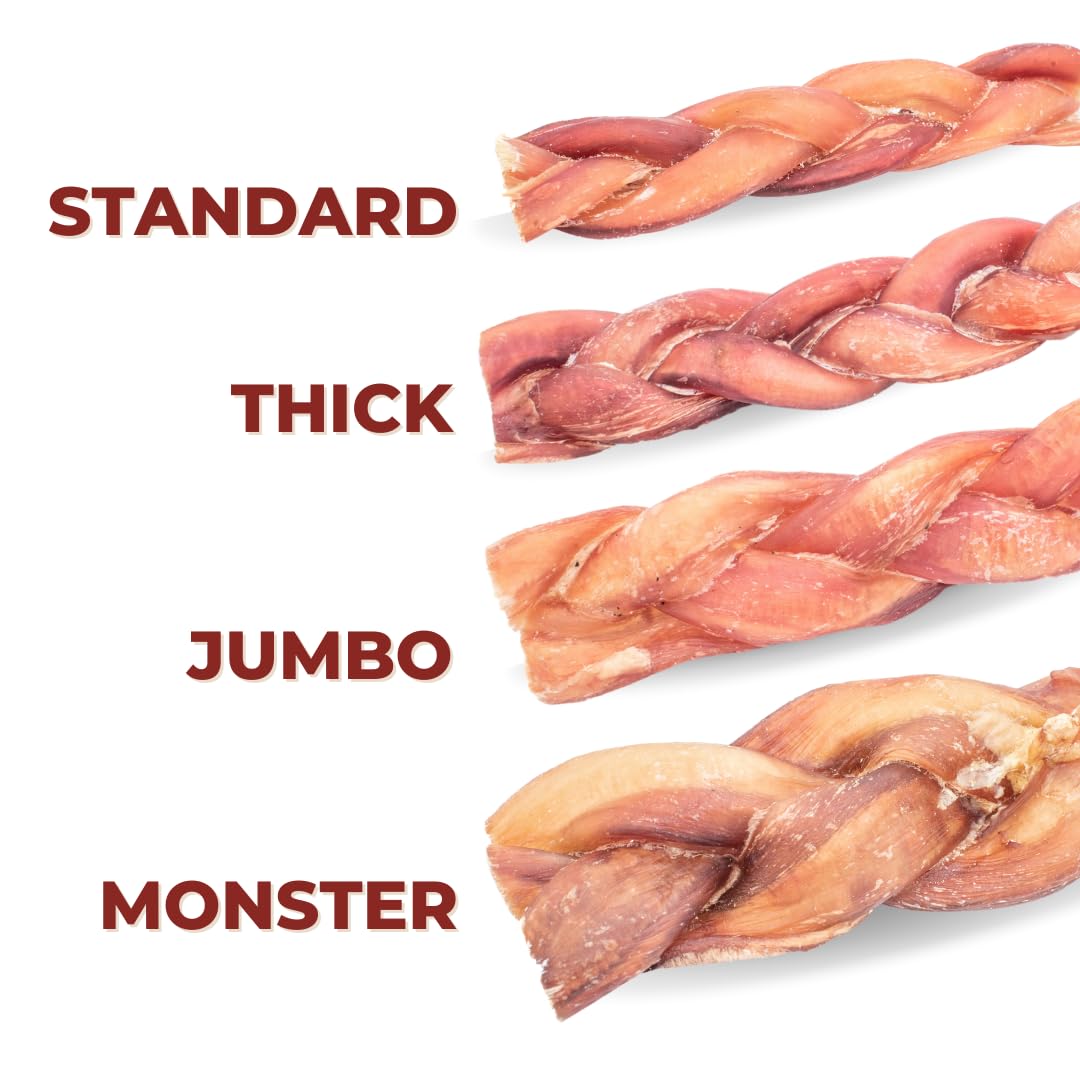 - THICK BRAIDED CHEWS: Keep even aggressive chewers happily occupied! Suitable for small to medium dogs, these 6 inch braided dog chews feature interwoven beef strips and weigh 25-34g each