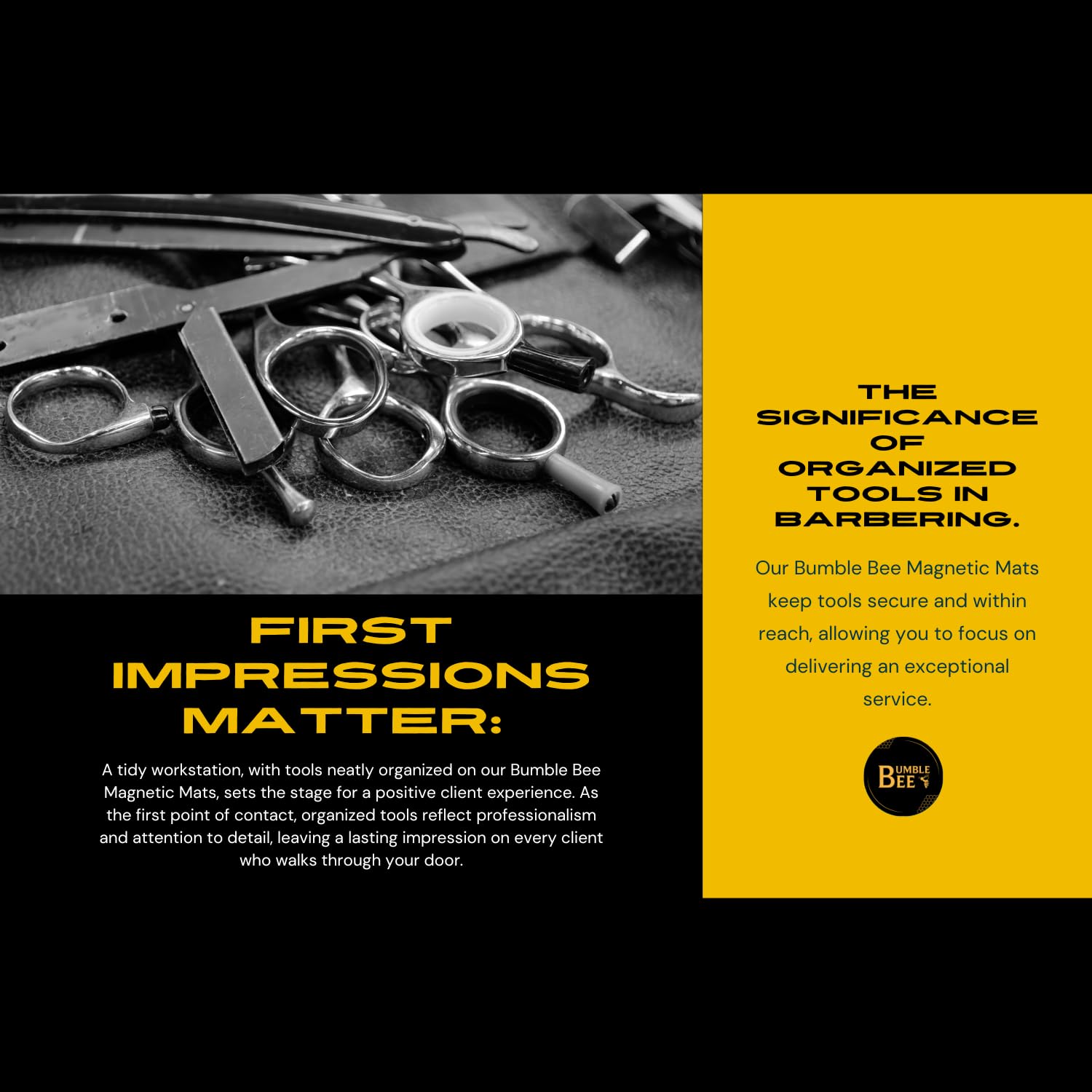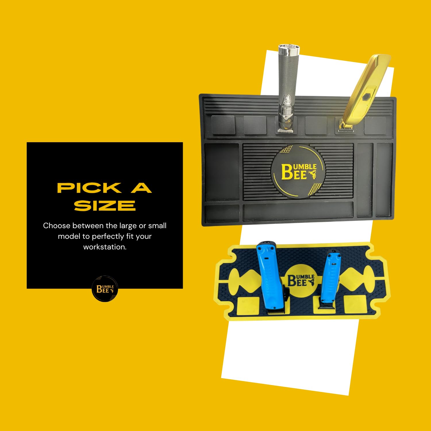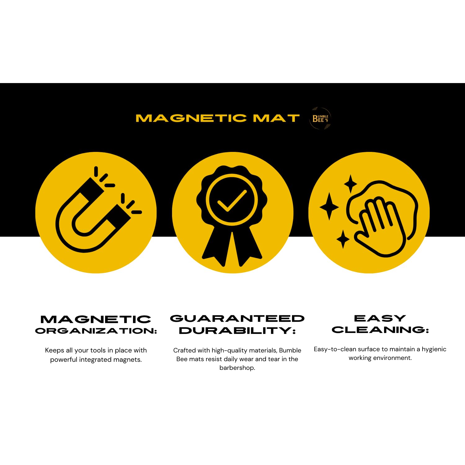 BUMBLE BEE Barber Equipment, Magnetic Barber Mat Non-Slip Heat Resistant Surface - Barber Mats for Clippers, Quick Access, Easy Cleaning - Barber Station Mat and Barber Organizer Station. (Small)