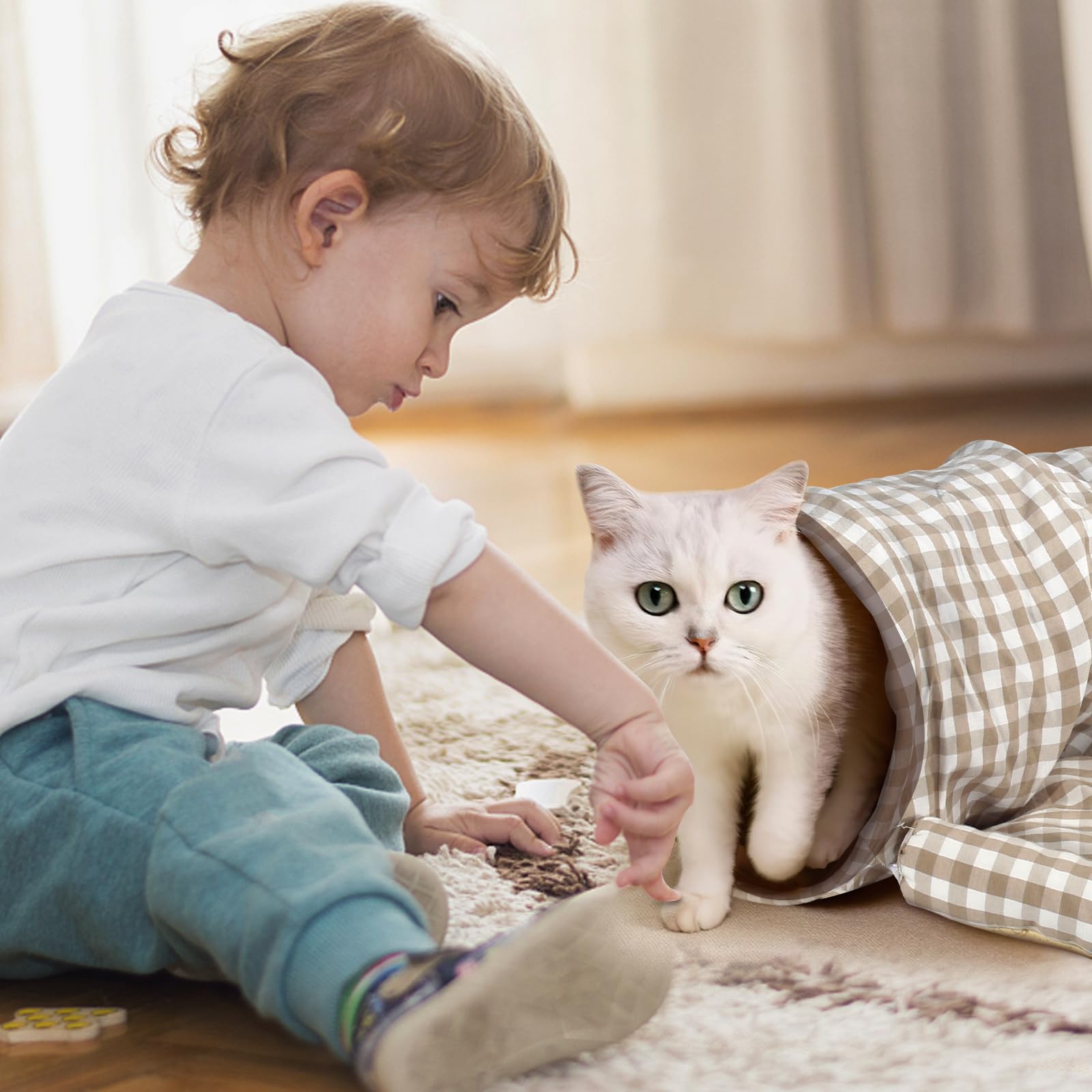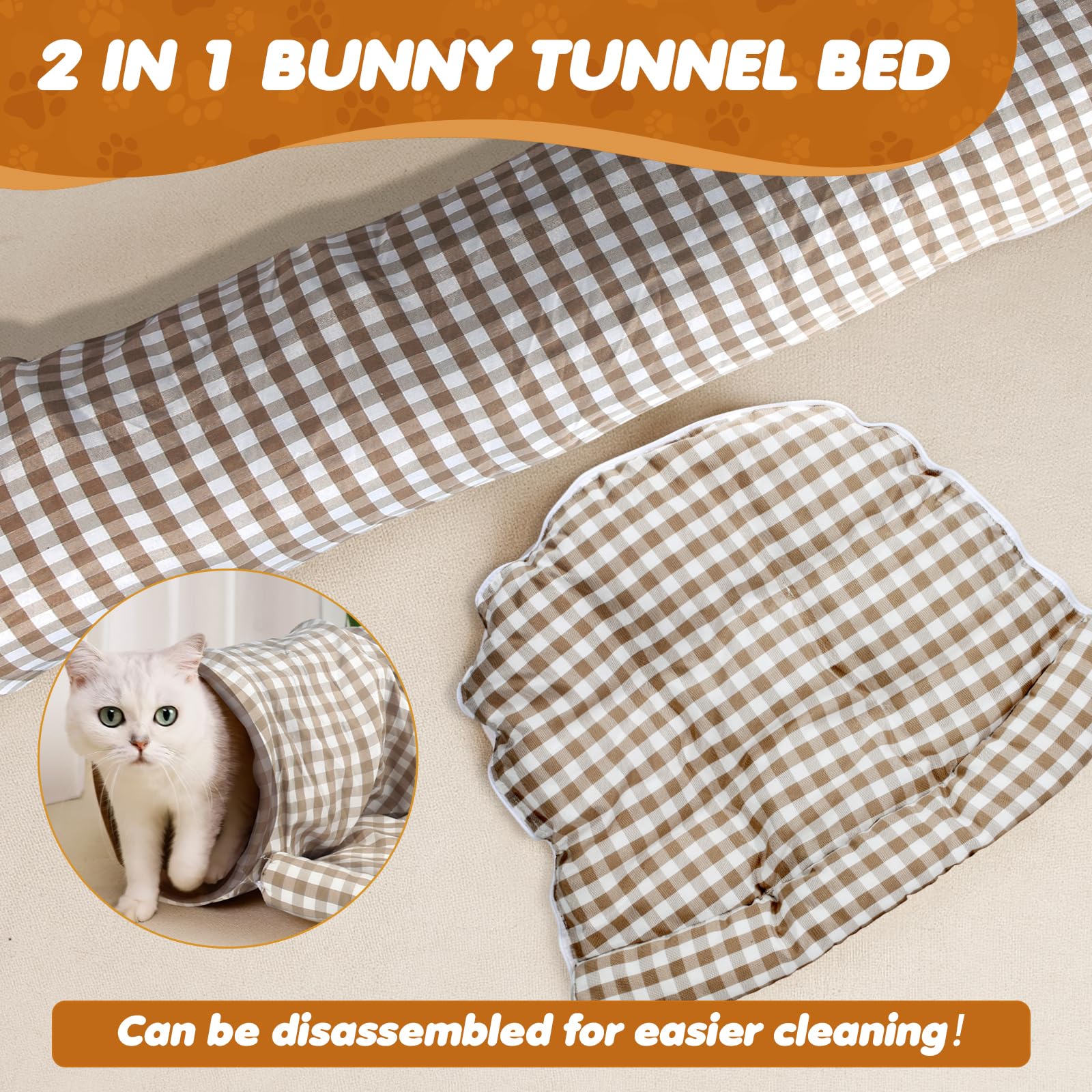 Bunny Tunnel Bed, 2-in-1 Collapsible Tunnel Tubes Toys with Removable Mat Hideout for Cats Kittens Rabbits Guinea Pigs Kitty