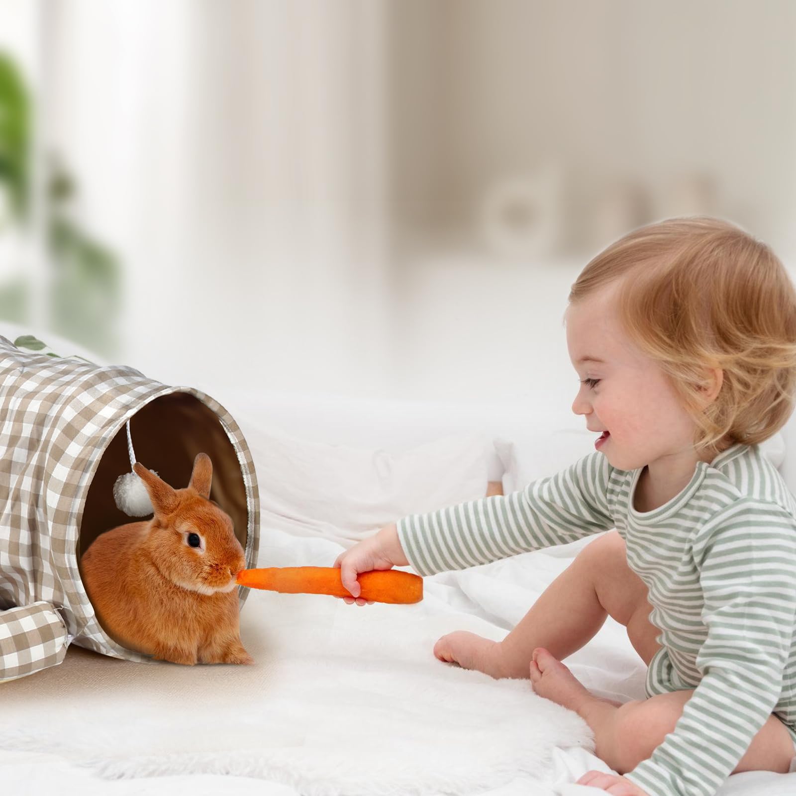 - 【Convenient Folding Storage】: Our foldable bunny house tunnel is equipped with buckles, which makes it convenient for you to fold the tunnel and compress it. The folded tunnel is easier to store, and you don’t have to worry about the storage of pet toys anymore!
