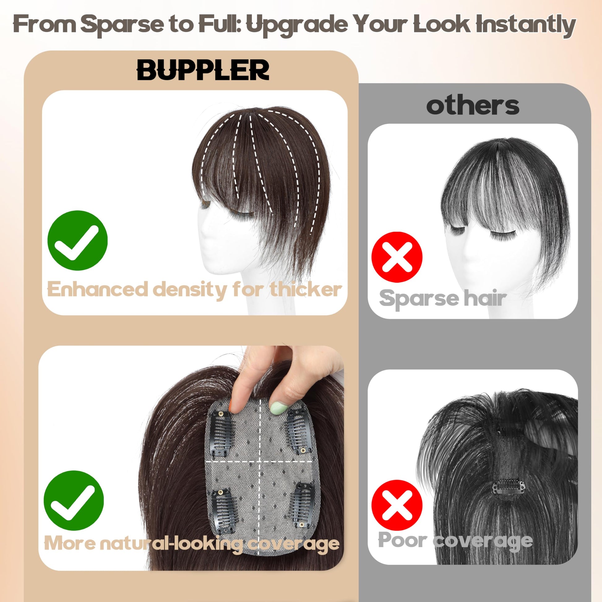 - Target Audience:Our human hair toppers for women are designed for early hair loss,thinning,gray hair,or receding hairlines.With 4 BB clips,real hair toppers blend seamlessly in 5s,adding volume and shape.Not suitable for nearly bald or thick coverage needs