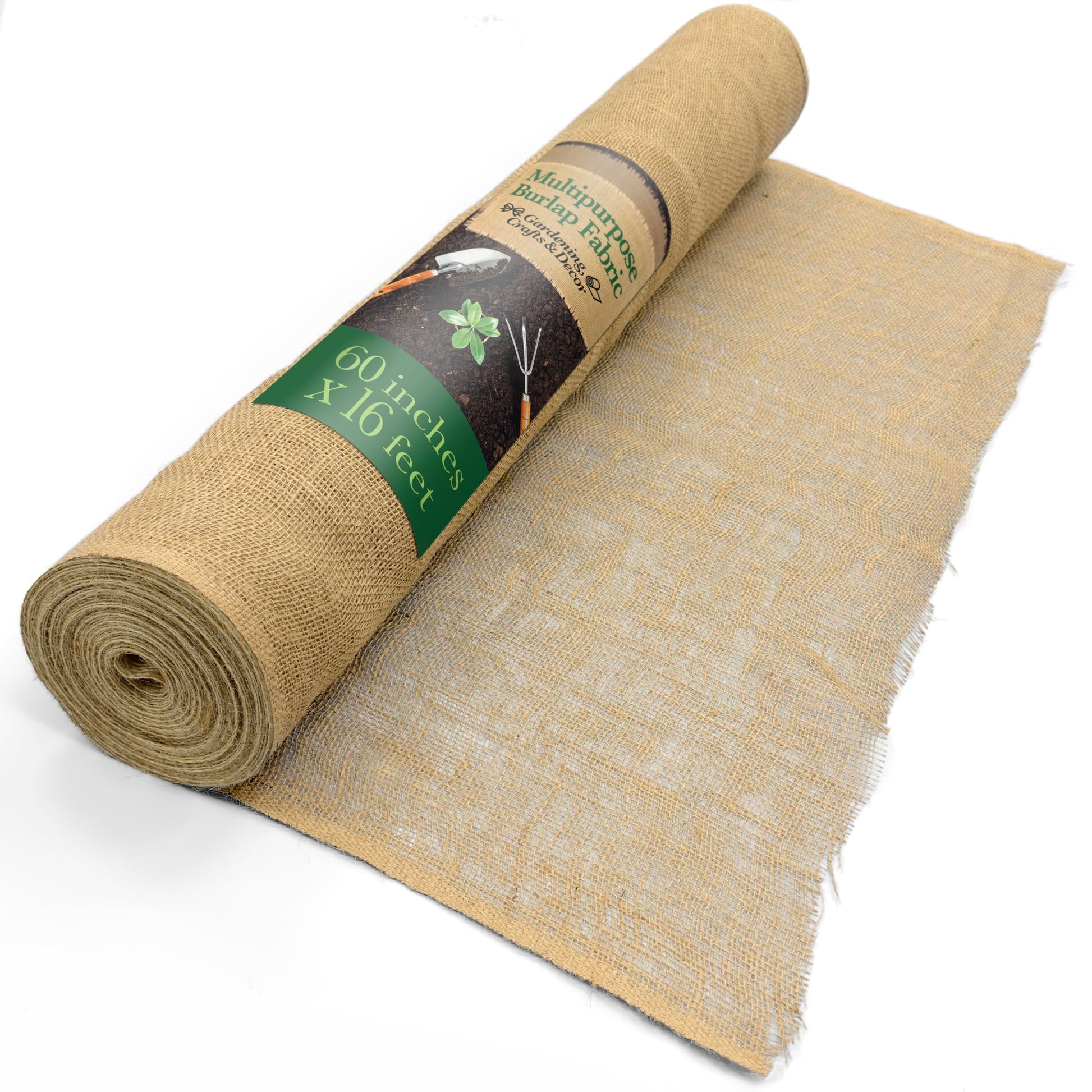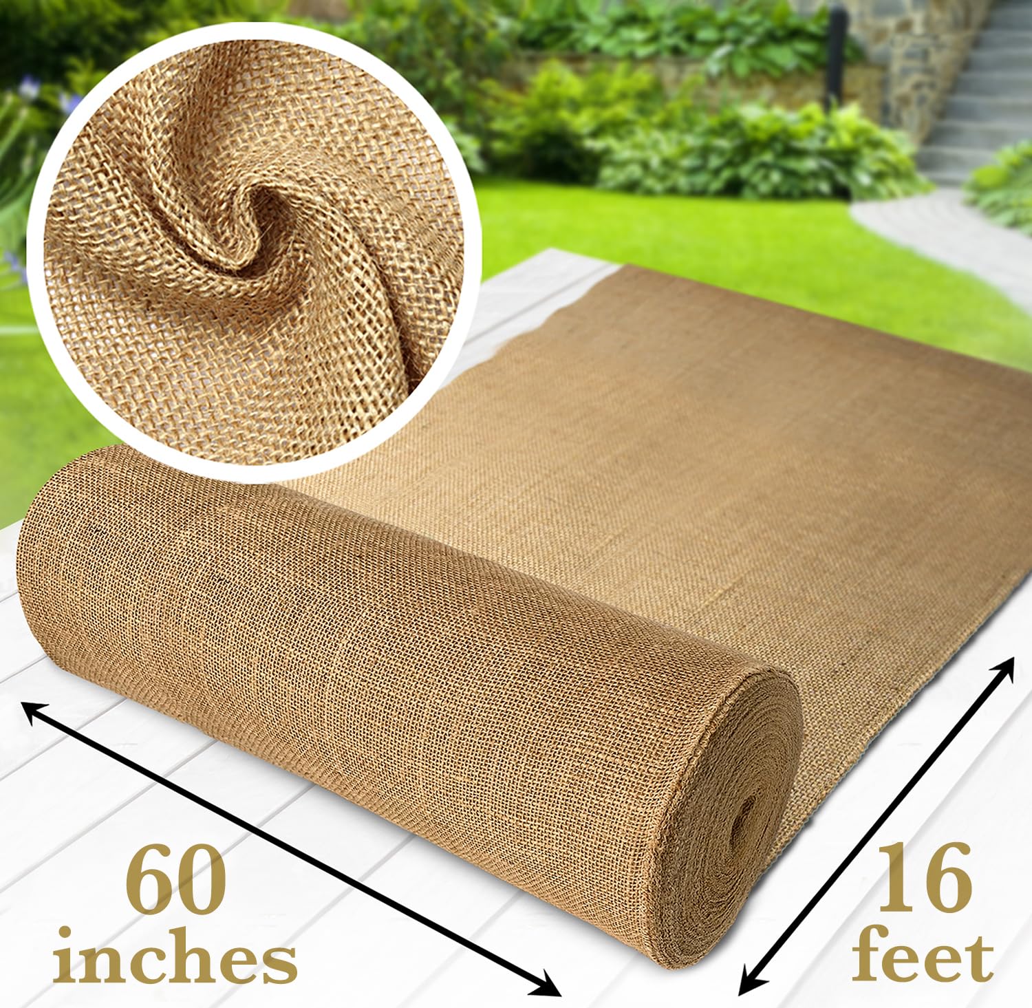 Burloptuous 60" x 16 Feet Gardening Burlap Fabric Roll - Tree Wrap, Weed Barrier, Erosion Control, Aisle Runner, Multipurpose Natural Fabric, High Density Jute Fiber Material