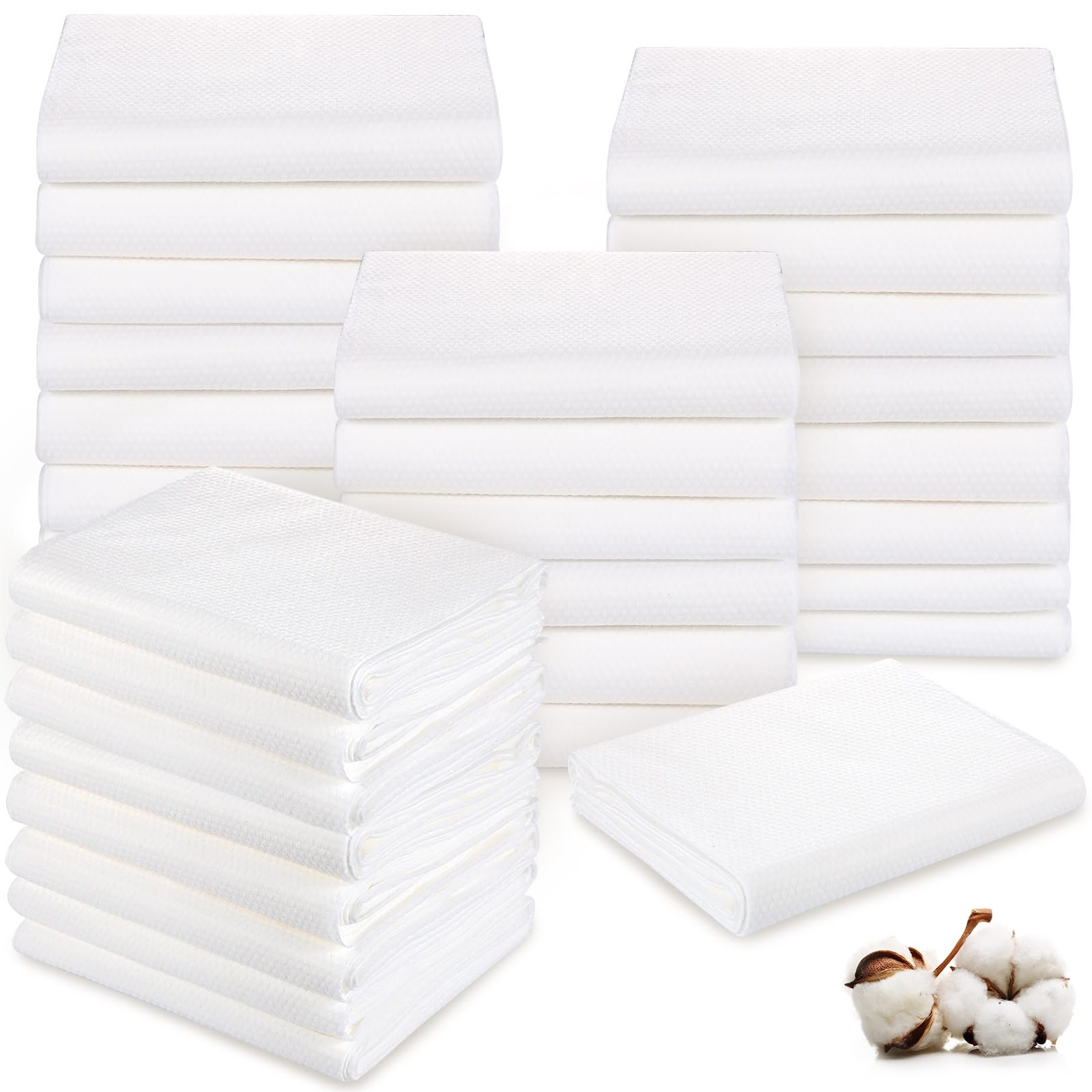- Relax in Comfort: with an ultra fine texture and excellent water absorption ability, our disposable shower towels are all about quality; Each towel is delicately crafted from quality cotton material, lending them a soft and comfortable feel that caresses your skin making each bath an intimate experience; Their pristine white color blends perfectly with your bathroom decor, emanating a sense of calm and serenity