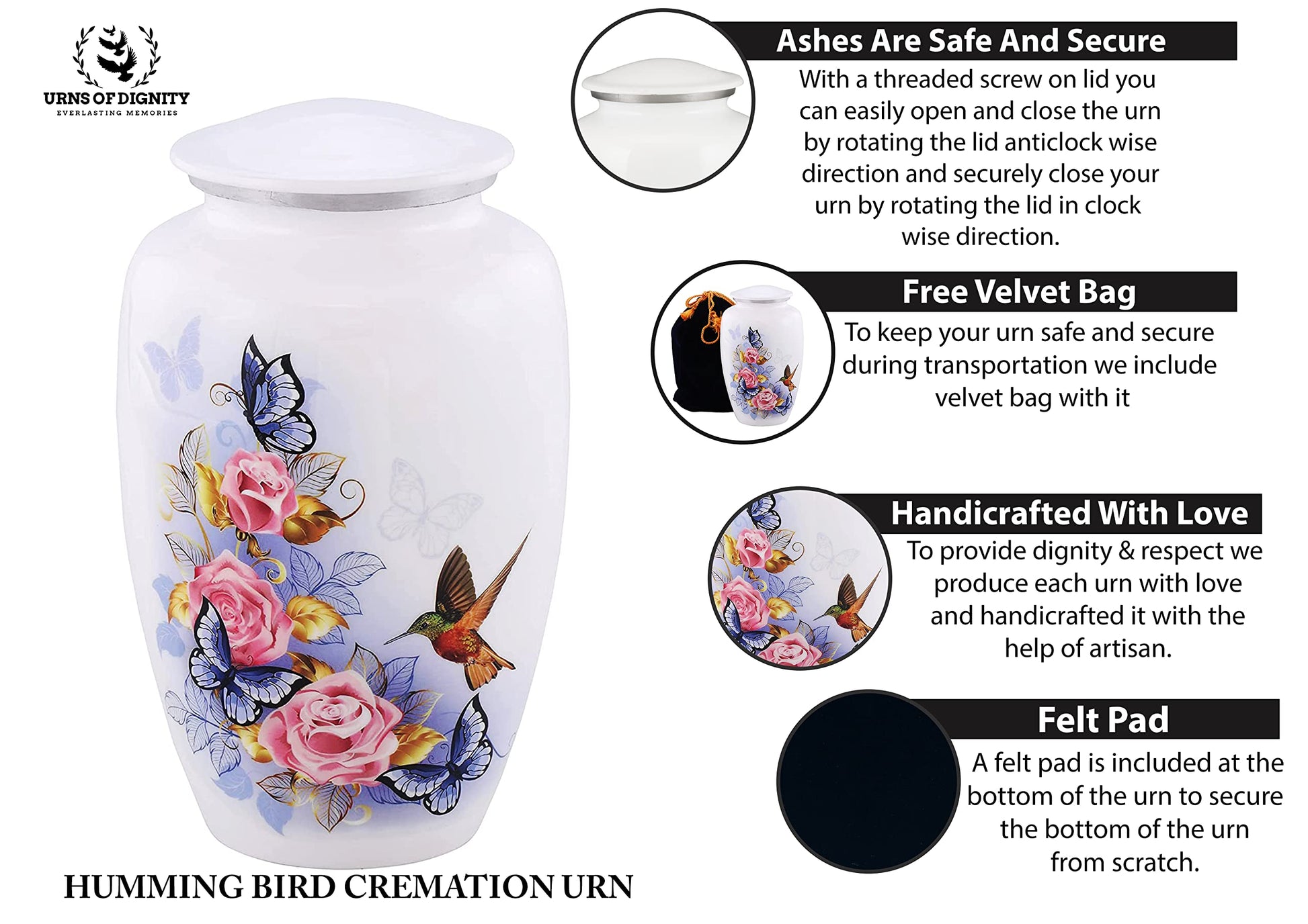 - QAULITY PRODUCT: When you lost someone close to your heart you need a high quality Humming Bird cremation urn to hold their ashes. This stunning cremation urn is handcrafted to give your loved one's remains the superior quality they deserve.