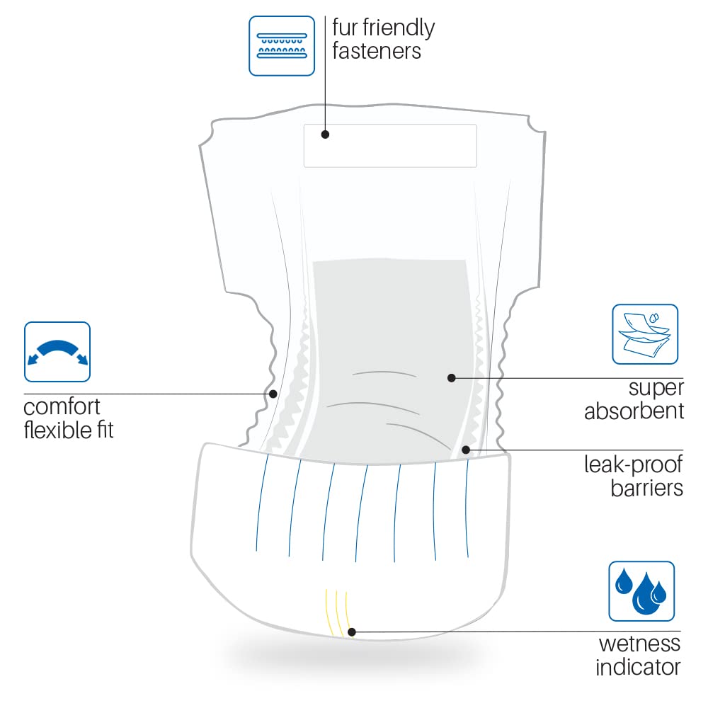 BV Dog Diapers Male Small (Waist 12-19 in) Super Absorbent - 50 Count Disposable - Doggie Diapers with Wetness Indicator - Adjustable Male Dog Wraps - Ideal for Incontinence/Training
