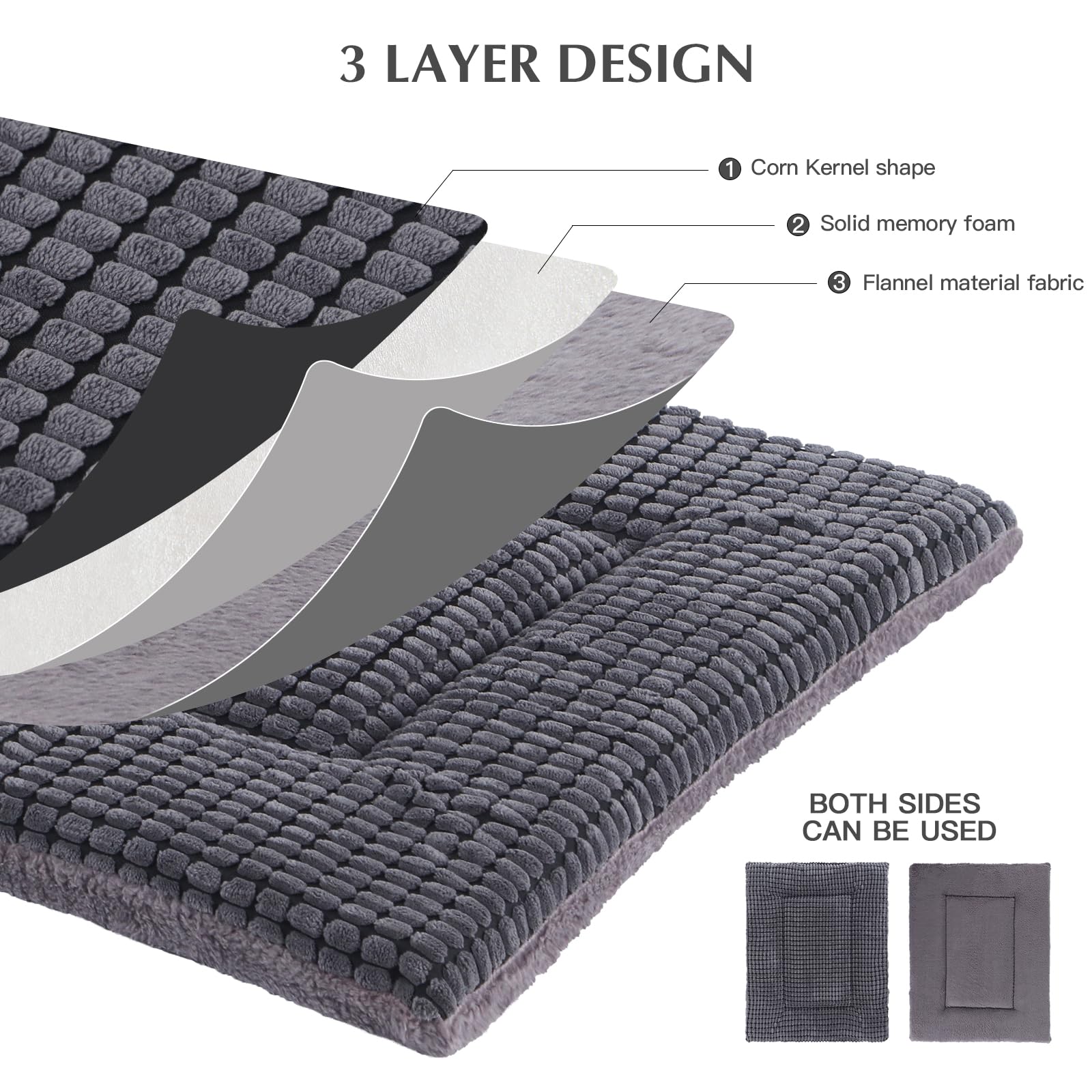 BVAGSS Dog Bed Mat,Reversible Dog Crate Pad, Memory Foam Dog Beds, Soft Warm Pet Cushion for Small Medium Dogs, Washable Pet Sleeping Mattress Kennel Bed Pad XH079 (42''x28''x1.6'',Light Grey)