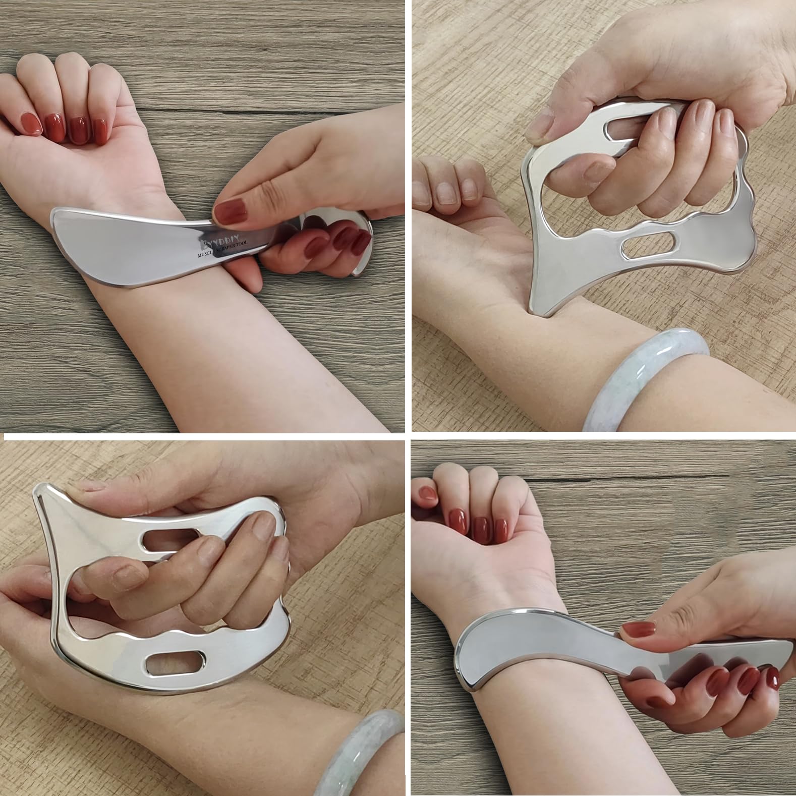 - Our stainless steel muscle scraping tool set can effectively help relieve muscle pain, soreness, and tension, break down soft tissue adhesions and fascial limitations, decompose scar tissue, and promote blood circulation,Helps to heal soft tissue and scar tissue injuries, and promotes blood circulation. It will reduce recovery time and pain.