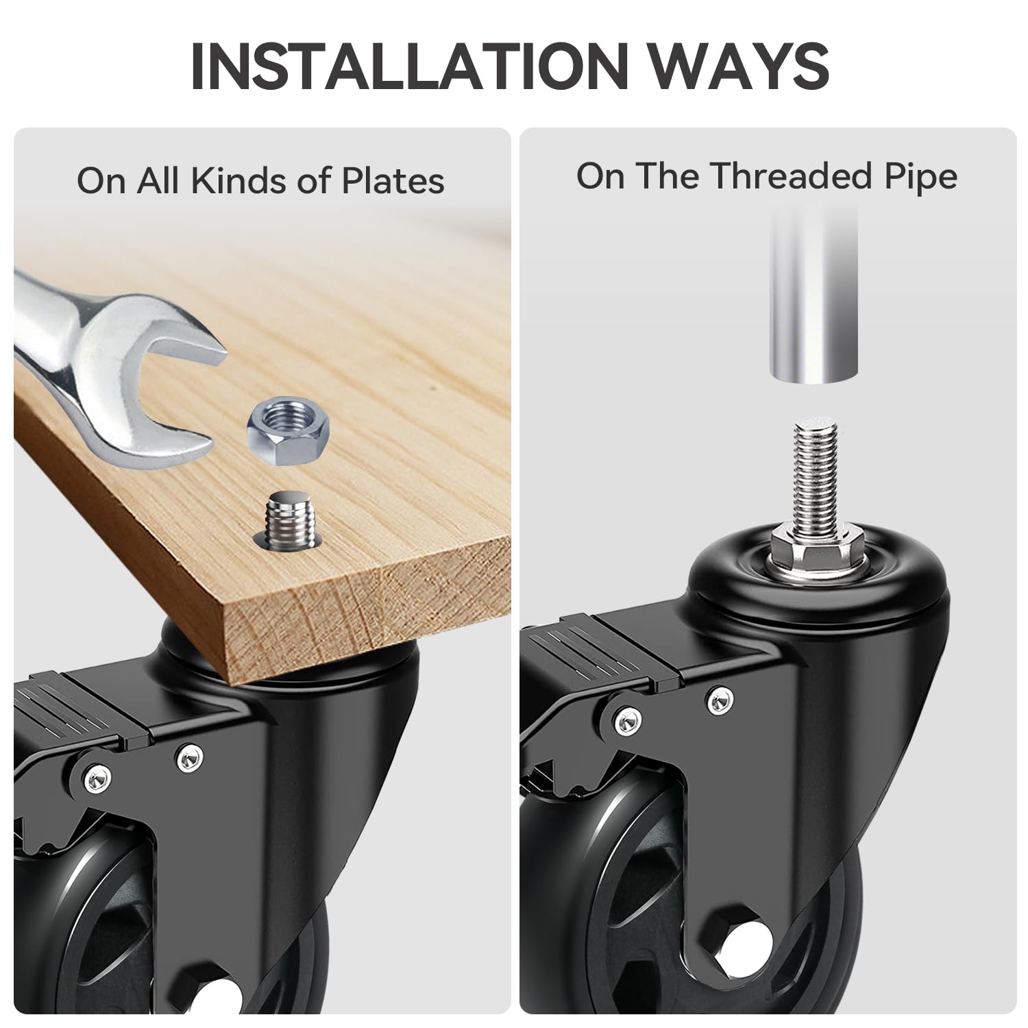 - WIDE APPLICATION: Experience seamless mobility with our threaded stem casters set of 4. Whether you have a workbench, cart, trolley, shelf, cabinet, furniture, plant stand, or any other item, these caster wheels provide the convenience and mobility you need.
