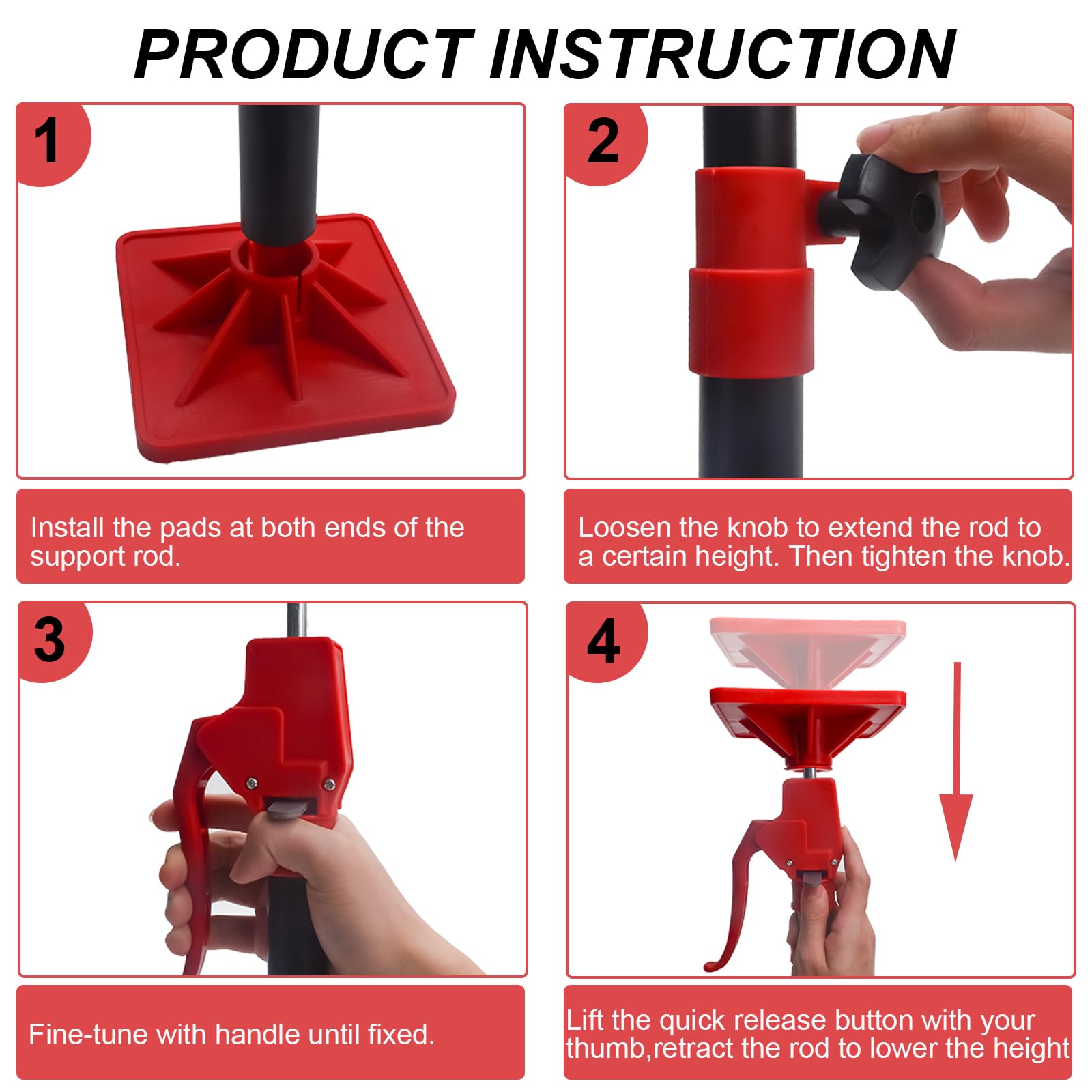 - Easy to Use: This cabinet jack support pole user-friendly. First, Install the pads at both ends of the support rod. Then loosen and tighten the locking knob to adjust to the approximate height. Next, use the fine-tune handle to adjust precisely. The adjustable support pole can easily be customized from 11.8 to 23.5 inches to fit your specific needs.