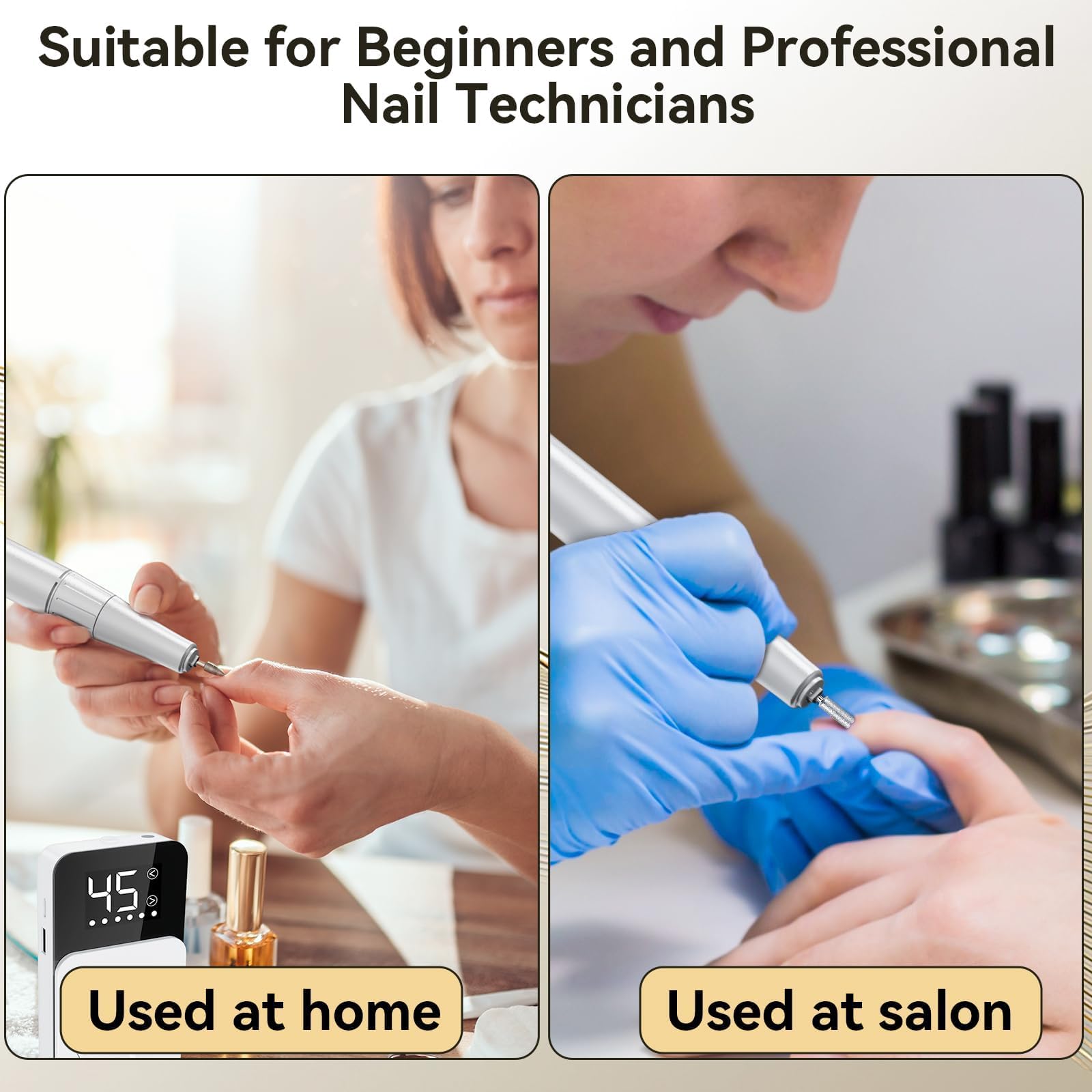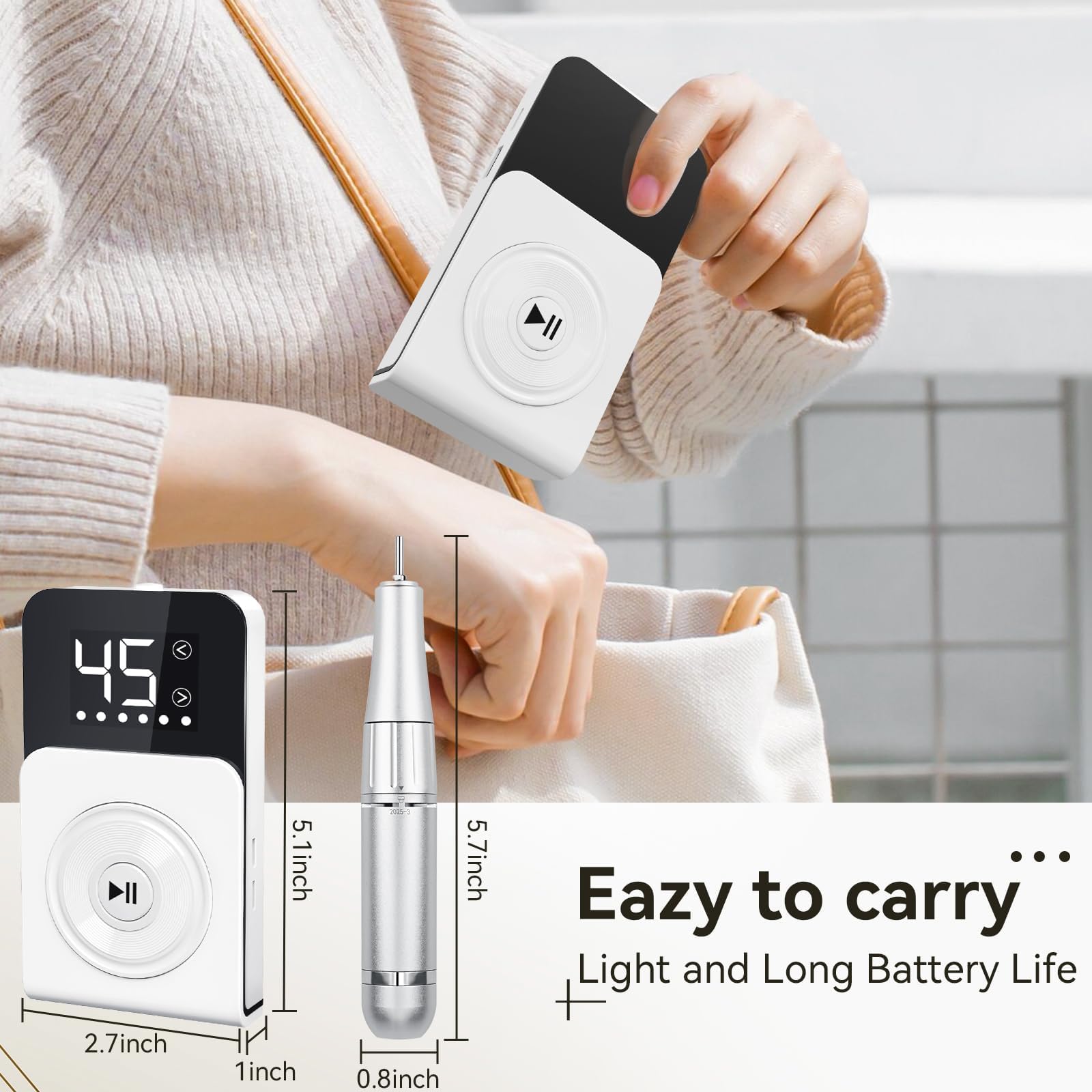 - Rechargeable & Portable: This efile nail drill machine comes with a large capacity battery 3000mAh. USB rechargeable, which charges for about 3 hours, can be used for up to 6-8 hours. Portable nail drill size(5.1*2.7*1 inch) ,electric nail filer is small and light, easy to carry and store. This nail drill machine is ideal for women who love daily manicure care, it combines portability and convenience