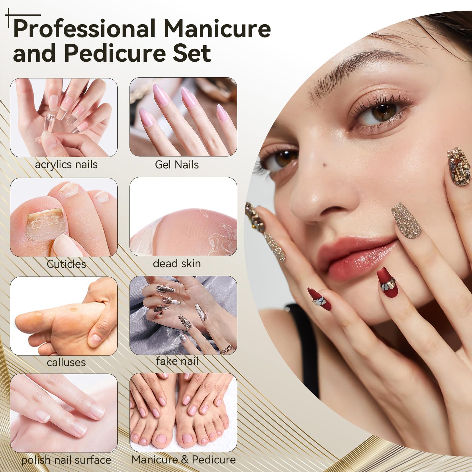 - 15 IN 1 Efile Nail Drill Kit: Including 7 nail drill bits for different usage,5 polishing drill bits, 30 sanding bands,2 polishing strips and 1 dusting brush, this nail drill kit meets all nail beauty needs.Professional manicure kit for women, perfect for grinding, carving, cutting, polishing, removing natural acrylics nails, gel polish dip powder nails. It also effectively removes cuticles, calluses, dead skin