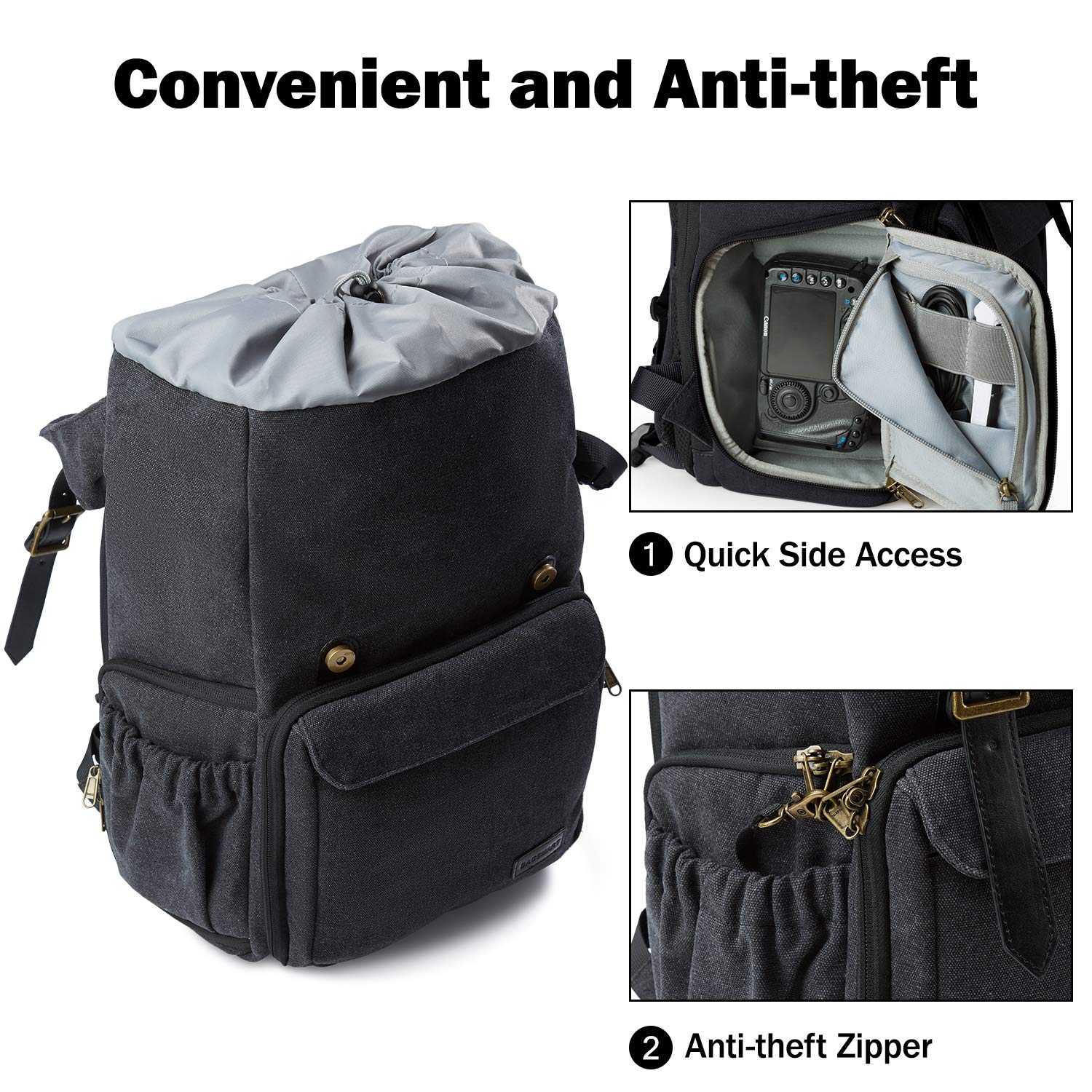 Camera Backpack, BAGSMART Camera Bag Anti-Theft DSLR SLR Canvas Backpack Fit up to 15" Laptop with Rain Cover, Tripod Holder for Women and Men,Black