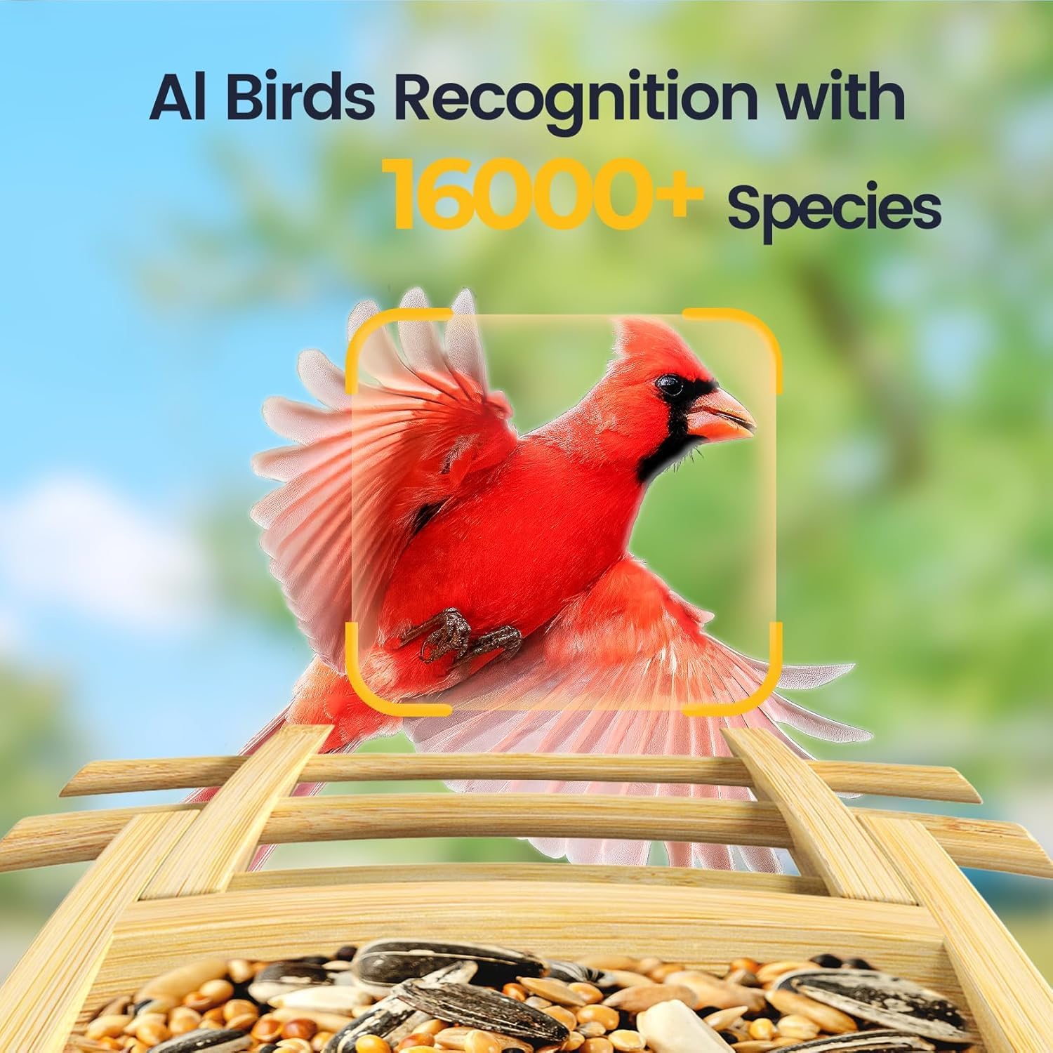 - 🐦【The Coolest Birding Gadget of Bird Lovers】Onhear R&D Team heard suggestions from 10,000+ outdoor enthusiasts questionnaires and designed this long endurance version Solar Bird Feeder with Camera. Equipped with 4W solar panels, AI recognition recognition for 16,000+ species, and a 2K HD camera with full-color night vision, it transforms backyard birding into an interactive and immersive experience.