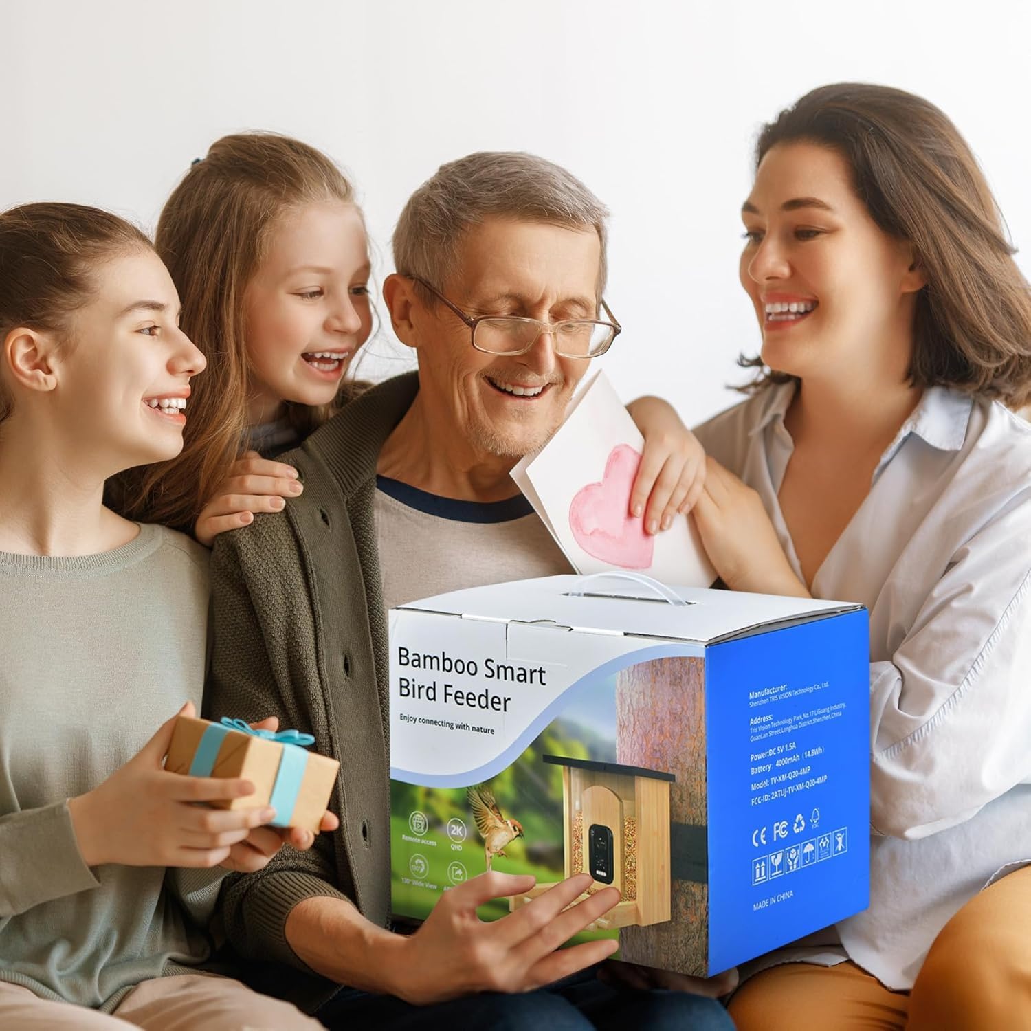 Camera Bird Feeder,Smart Bird Feeder with Camera,High-End Bamboo Birds Watching Cam,2K HD Came Solar Powered,AI Identify 16000+,Auto Capture Birds & Notify in Time, Ideal Gift for Backyard Birder