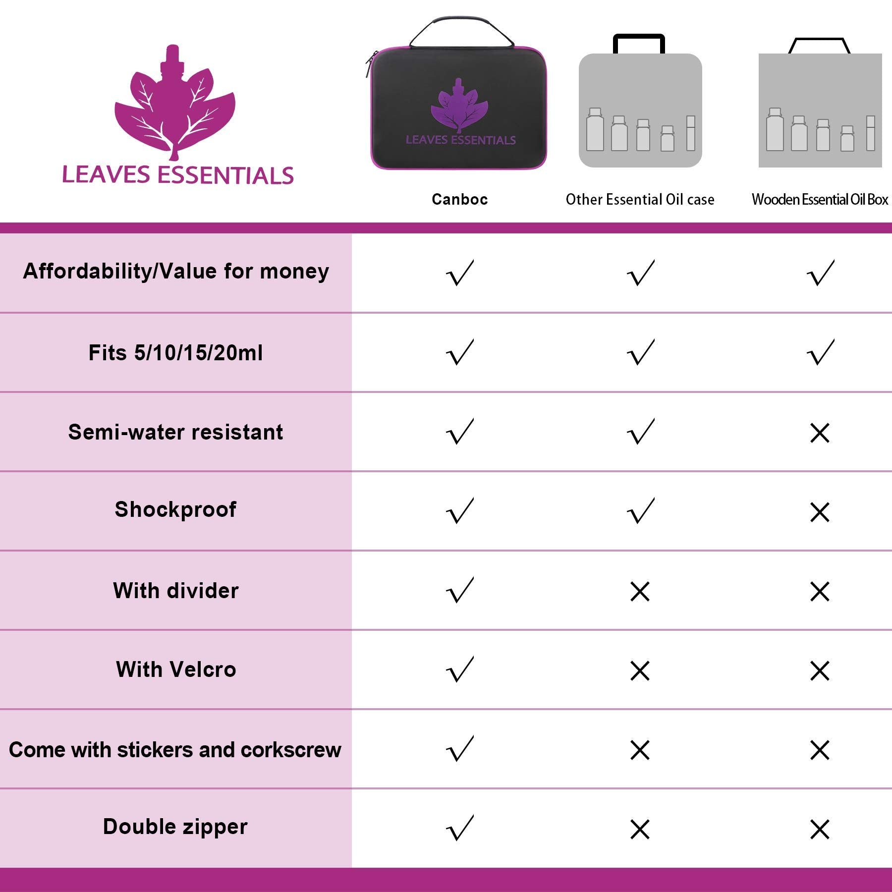 - CASE ONLY! (Bottles and accessories are not included). Perfect protection: Made of fabric material and high-quality durable EVA hard shell that is sturdy, shockproof and semi-waterproof to hold essential oil bottles. Provide an ideal storage environment to your essential oils, preventing the essential oil vials from clinking together and protect them from being weaken the beneficial therapeutic qualities of your oils by temperature changes, moisture, oxygen and sun exposure (UV).