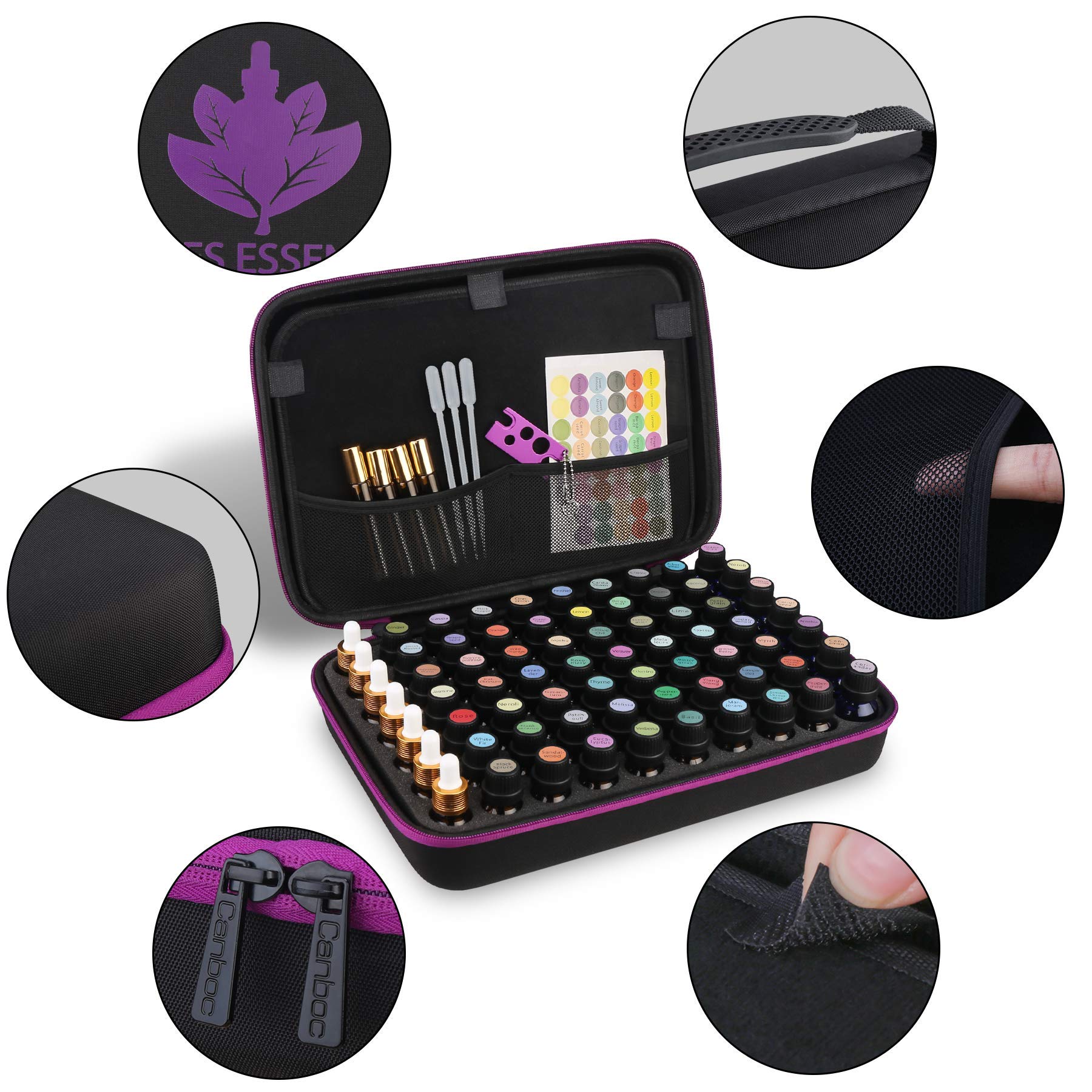 Canboc 70 Bottles Essential Oil Travel Storage Case - Holds 5ml 10ml 15ml 20ml for Young Living doTERRA Aromatherapy Bottle, Hard Carrying Cases fit Dropper, Sample Jar, Foam Insert Organizer, Black