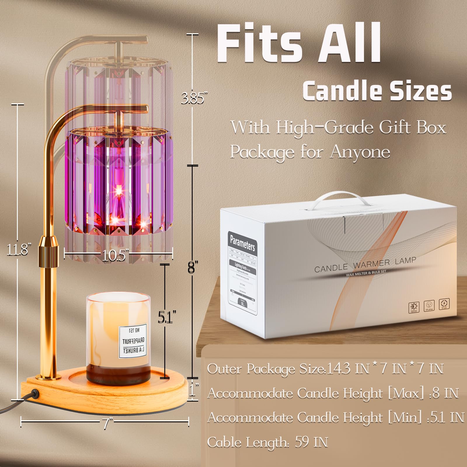 Candle Warmer Lamp with Timer and Dimmer Purple, Adjustable Height Glass Candle Lamp, Electric Candle Lamp Warmer for Home Decor,Gift for Women,2-Bulb Candle Warming Lamp for Jar Candles (Purple)