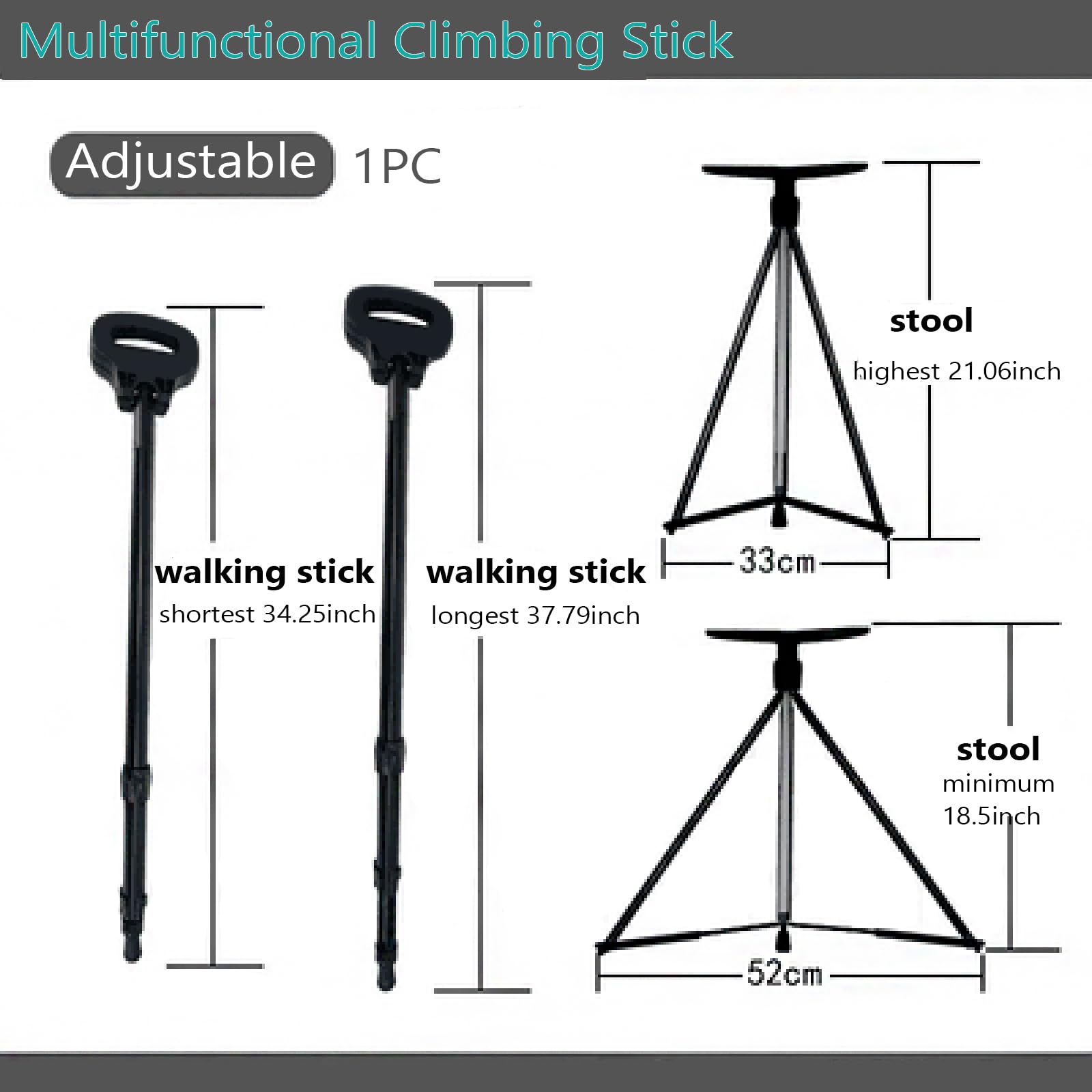 - 👍2 IN 1: It comes in two forms, one is in crutch form and the other is in seat form, which can be easily transformed without complicated procedures. Multi-functional walking pole with seat can not only support your body when you are tired of climbing but also allow you to briefly sit on the folded seat to rest, the length can be freely adjusted according to your personal needs, and when needed, it can be easily transformed from crutches to a seat to let you recover from your exertion.