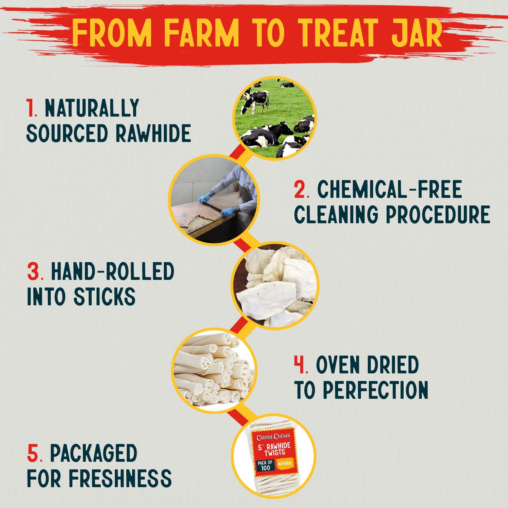 - Dog Rawhide Twist Sticks all natural ingredients best selling dog treats for small dogs makes the Canine Chews rawhide sticks the dog chew of choice for your pup naturally satisfying your dog's urge to chew. Odor free and home-safe, these rawhide treats will not stain carpets or furniture