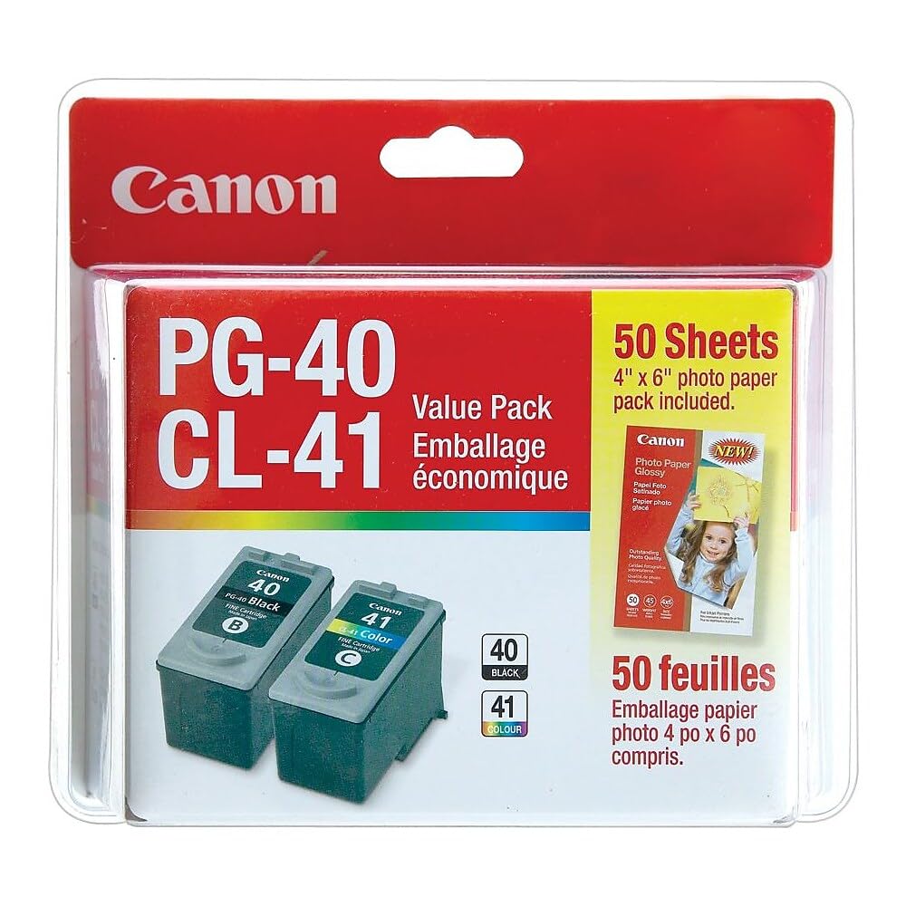 Canon Genuine Canon PG-40/CL-41 Ink Cartridge Photo Value Pack, Black, Tri-Colour and 50 Sheets Photo Paper (0615B010)