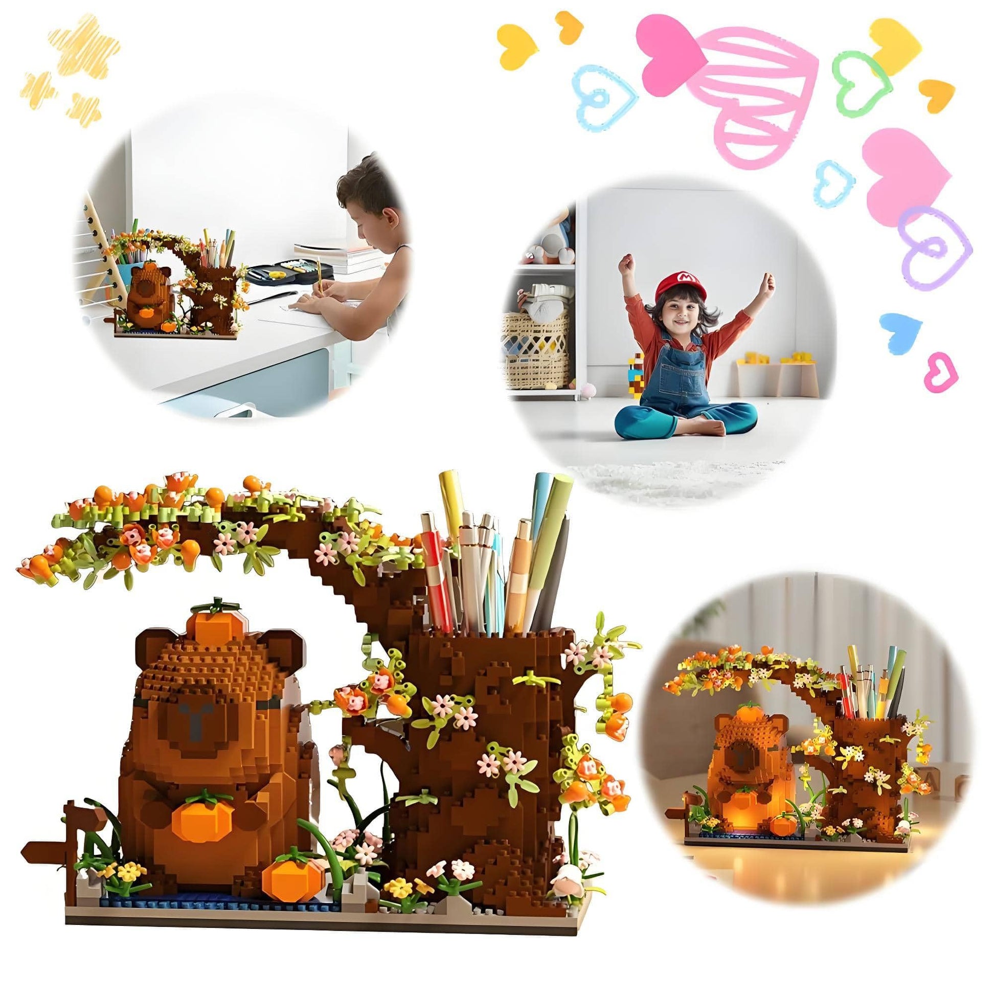 - Delightful Capybara-Themed Building Block Kits: Comprising 1880+ pieces high-quality and durable blocks. Spark creativity with this nature-inspired kit featuring an adorable capybara holding a pumpkin, surrounded by a colorful tree and flowers
