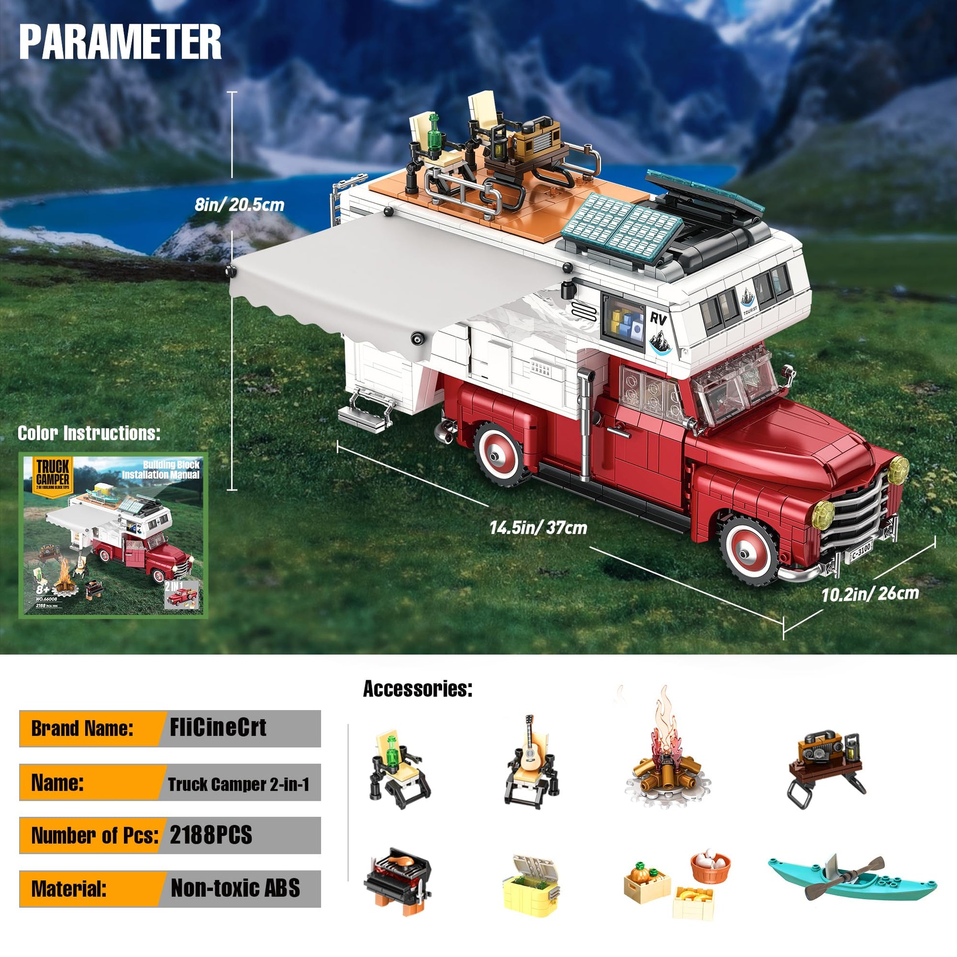 Car Building Block for Adult, 2-in-1 Camper Van Building and Farm Pickup Truck Building Set Toy for Boys Age 12+, Retro Rvs Building Block Kit Set, 2188pcs