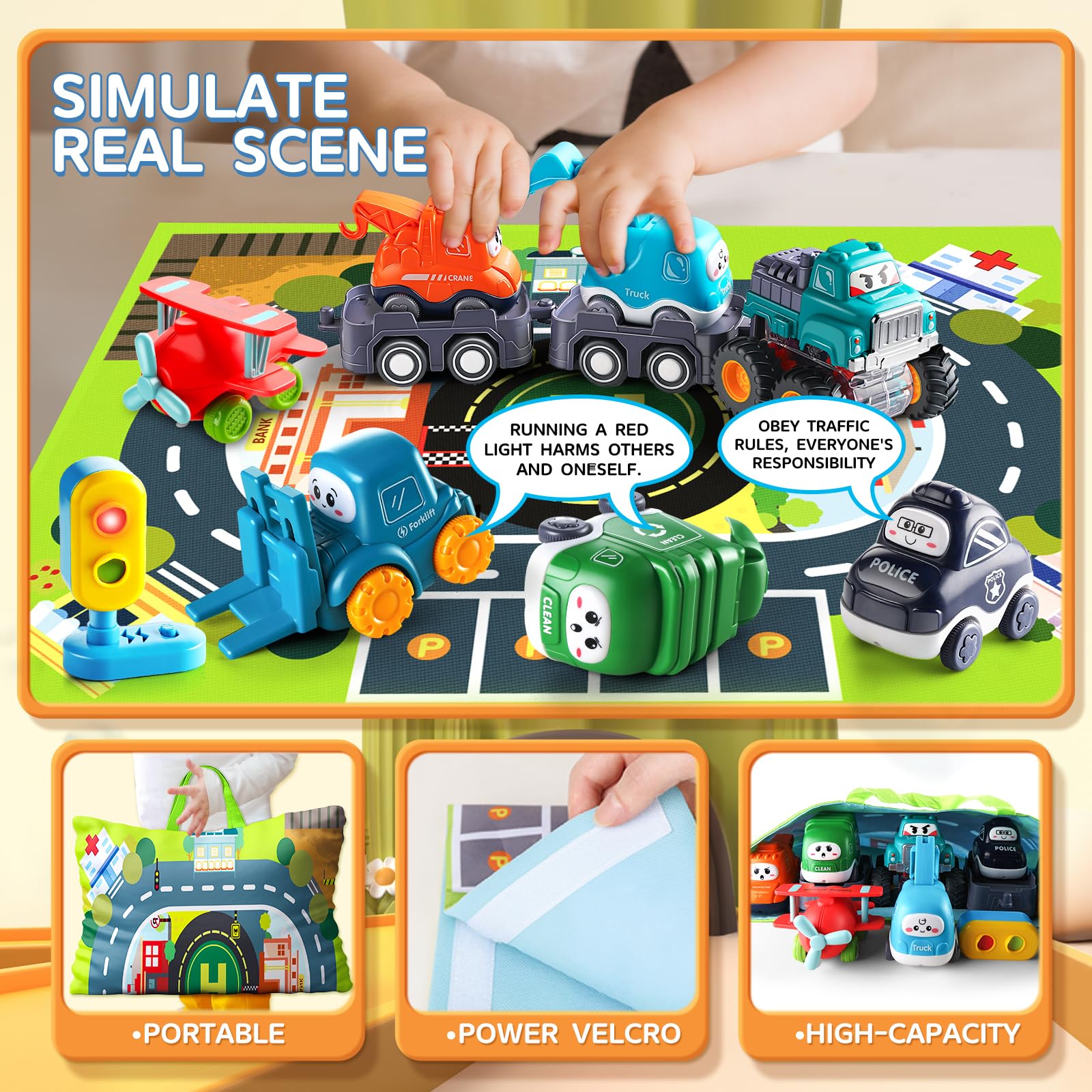 - Safe & Robust: All cars and traffic light are made of non-toxic, high quality and robust ABS material. They have no small parts and prevents choking hazard