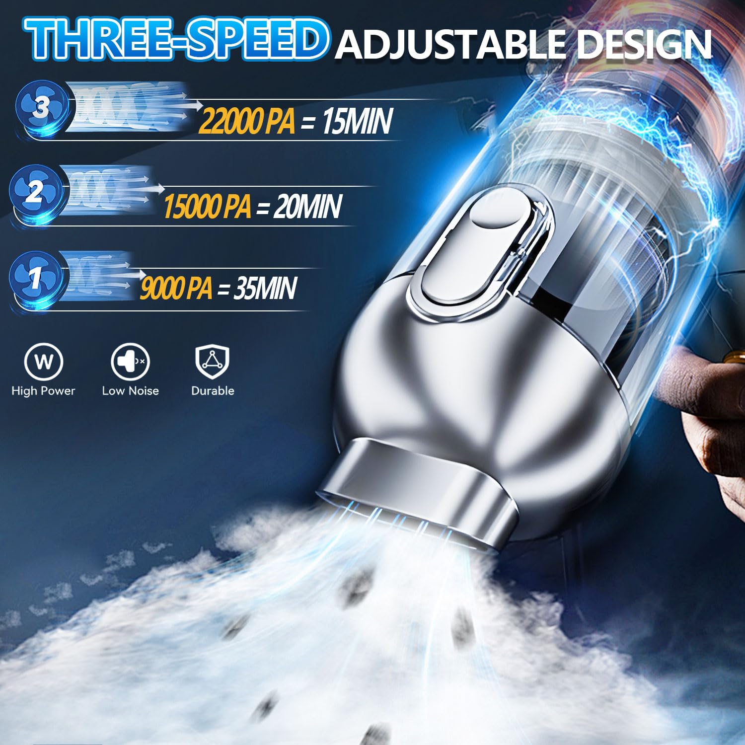 Car Vacuum Cleaner, 22000Pa Powerful Suction Handheld Vacuum Cordless with Brushless Motor, 11-in-1 Portable Hand Held Vacuum Rechargeable Air Duster/Blower/Pump for Pet Hair Removal, Car, Home