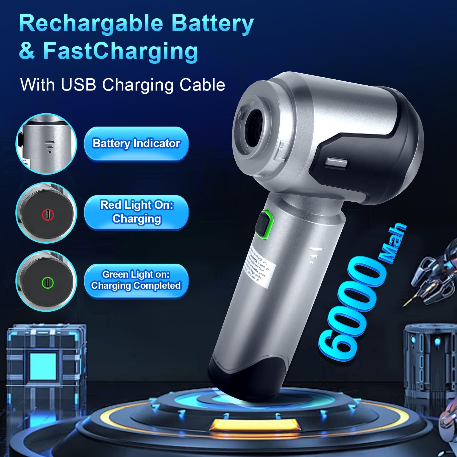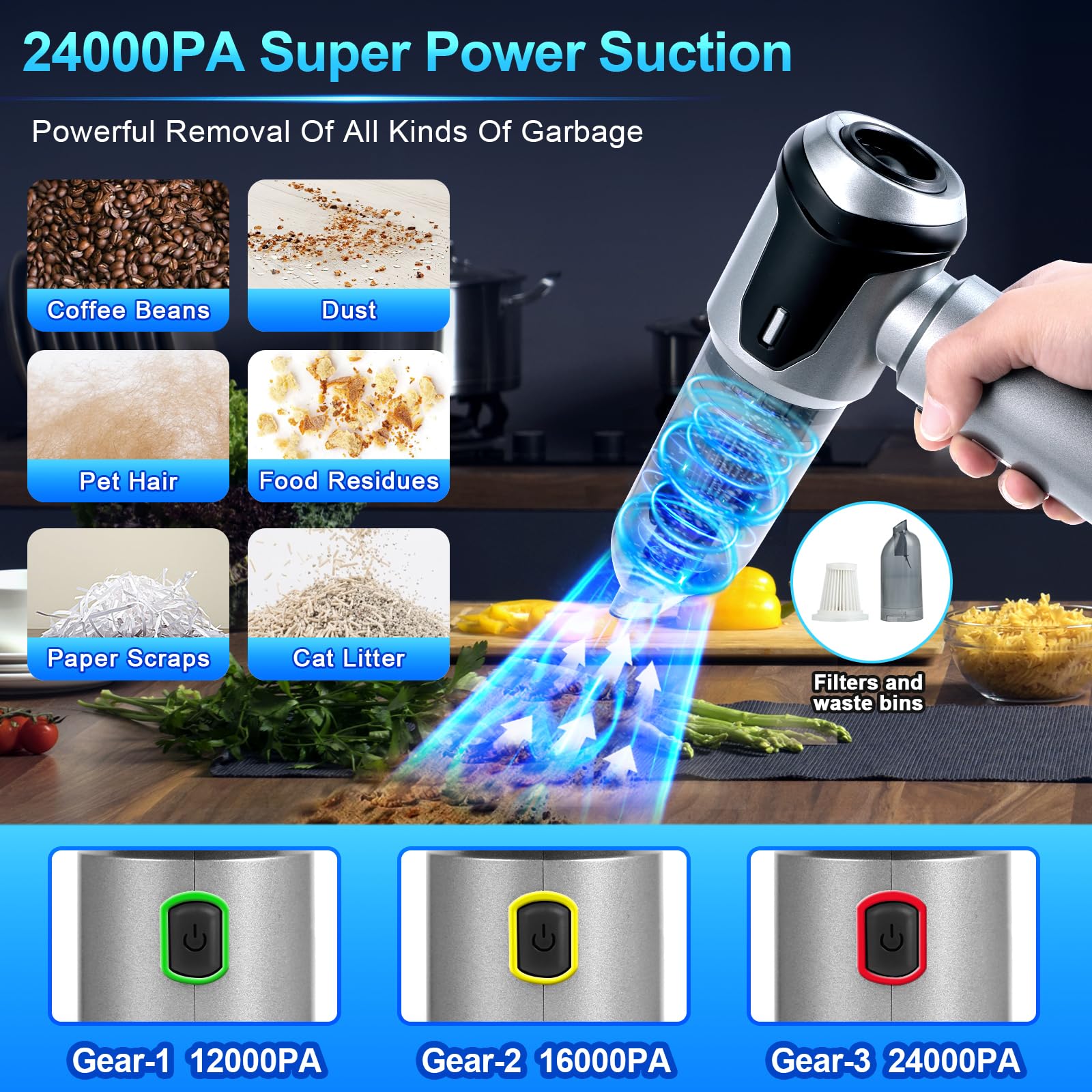 - 【24000PA High Power Mini Vacuum Cleaner】: Cordless handheld Car Vacuum Cleaners with 24000PA Powerful Suction,,Rechargeable Handheld Vacuum,Portable Cordless Compressed Air Duster Air Blower with powerful brushless motor for Car Home office,22000pa super suction can help you clean the dust and pet hair in the car, sofa, floor,the handheld vacuum cordless noise is lower than 70dB with noise-reducing technology