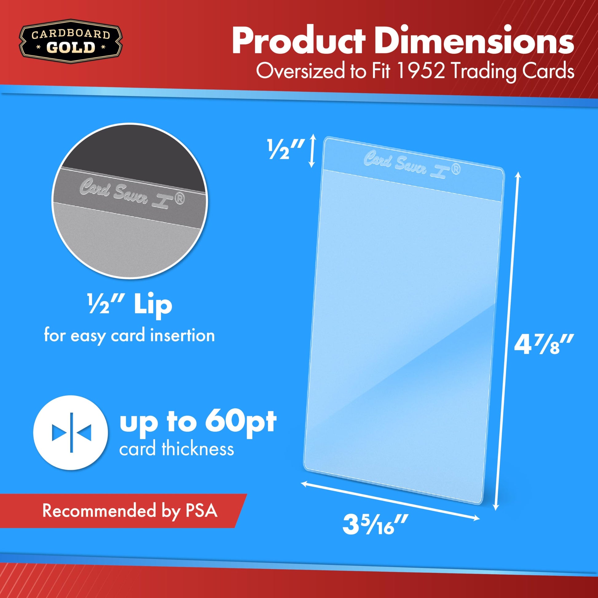 - ๐ ๐๐ผ๐บ๐ฝ๐ฎ๐๐ถ๐ฏ๐น๐ฒ ๐ณ๐ผ๐ฟ ๐ ๐ผ๐๐ ๐๐ฎ๐ฟ๐ฑ ๐ง๐๐ฝ๐ฒ๐: Expertly designed for a wide range of trading cards. With their 3 5/16" by 4 7/8" size and 1/2" lip the Cardboard Gold Card Saver 1 holders are ideal for baseball, football, and other sports cards, including pre-1957 larger-sized cards. Whether you're preserving vintage collectibles or modern favorites, these cardsavers ensure optimal and stylish protection for any card in your collection.