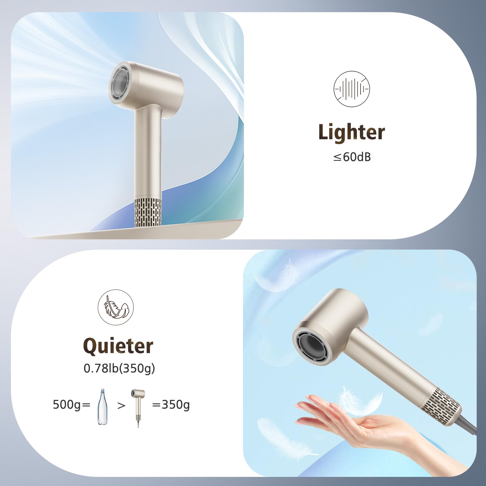 - Light and Durable Design: Weighing just 0.77 lbs,this portable travle hair dryer is lightweight and easy to handle.The noise level is less than 60 decibels, making it suitable for home and professional salon use. The 4.9 ft (1.5 M) power cord provides flexibility and convenience during styling.