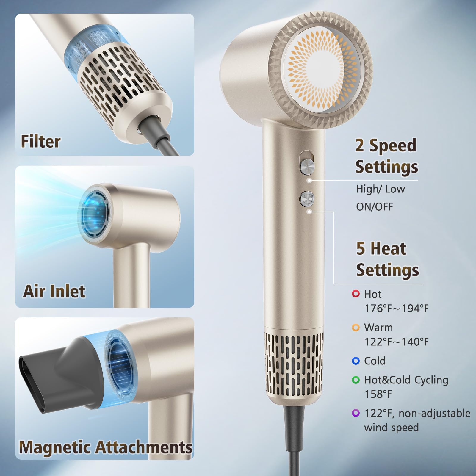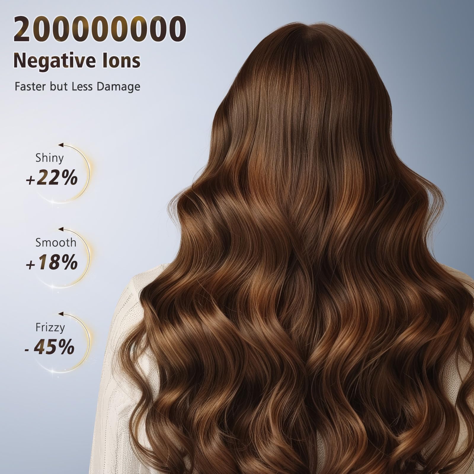 - Smooth and Healthy Hair: Our ionic hair dryer releases 200 million negative ions to help reduce frizz and static for smoother, healthier hair. Plus, faster drying times mean less damage to your hair.